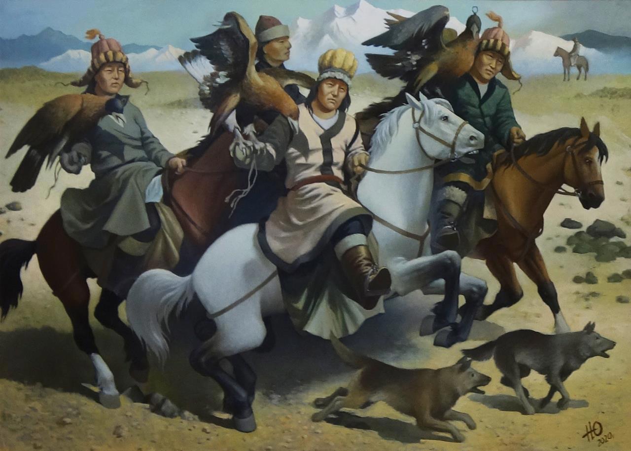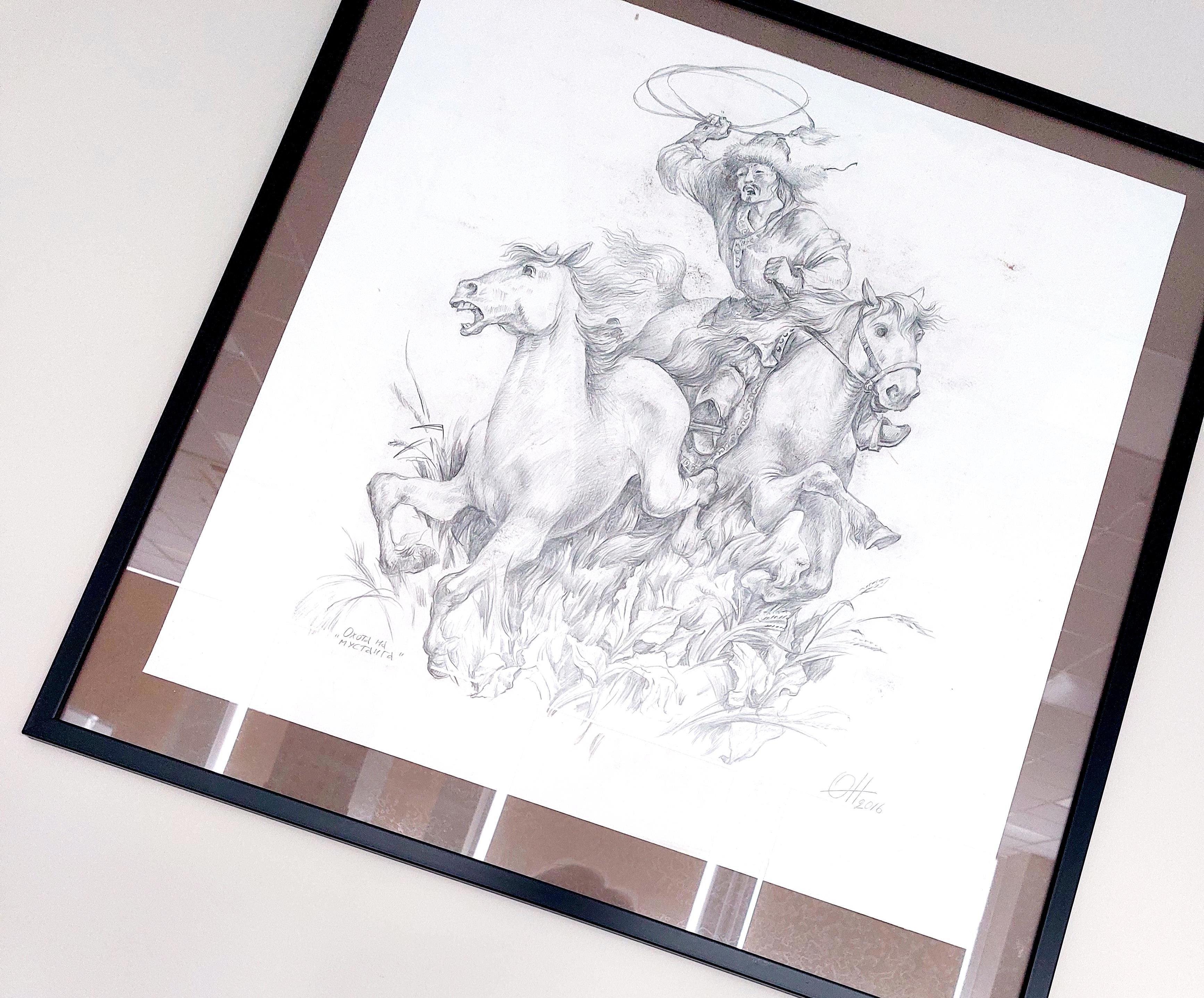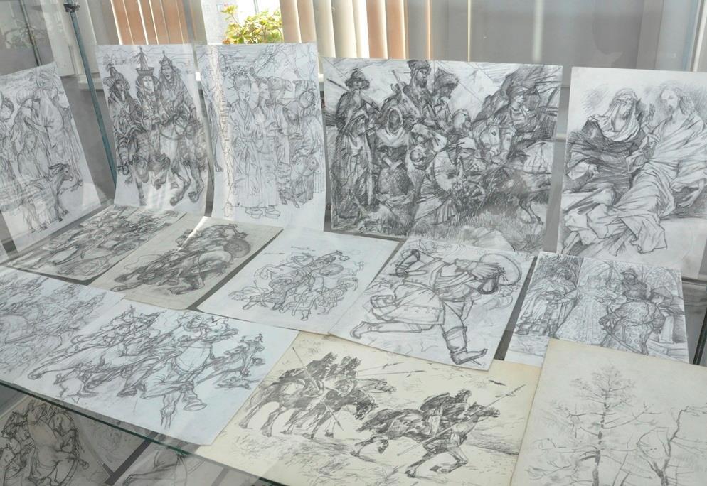 На столь скромном выставочном пространстве художник смог вовлечь зрителя в свой авторский мир, в котором скачут на быстроногих конях татарские воины, встречаются в диком поле, затевают странные тюркские игры верхом на своих скакунах. Имя мастера - Николай Острицов.