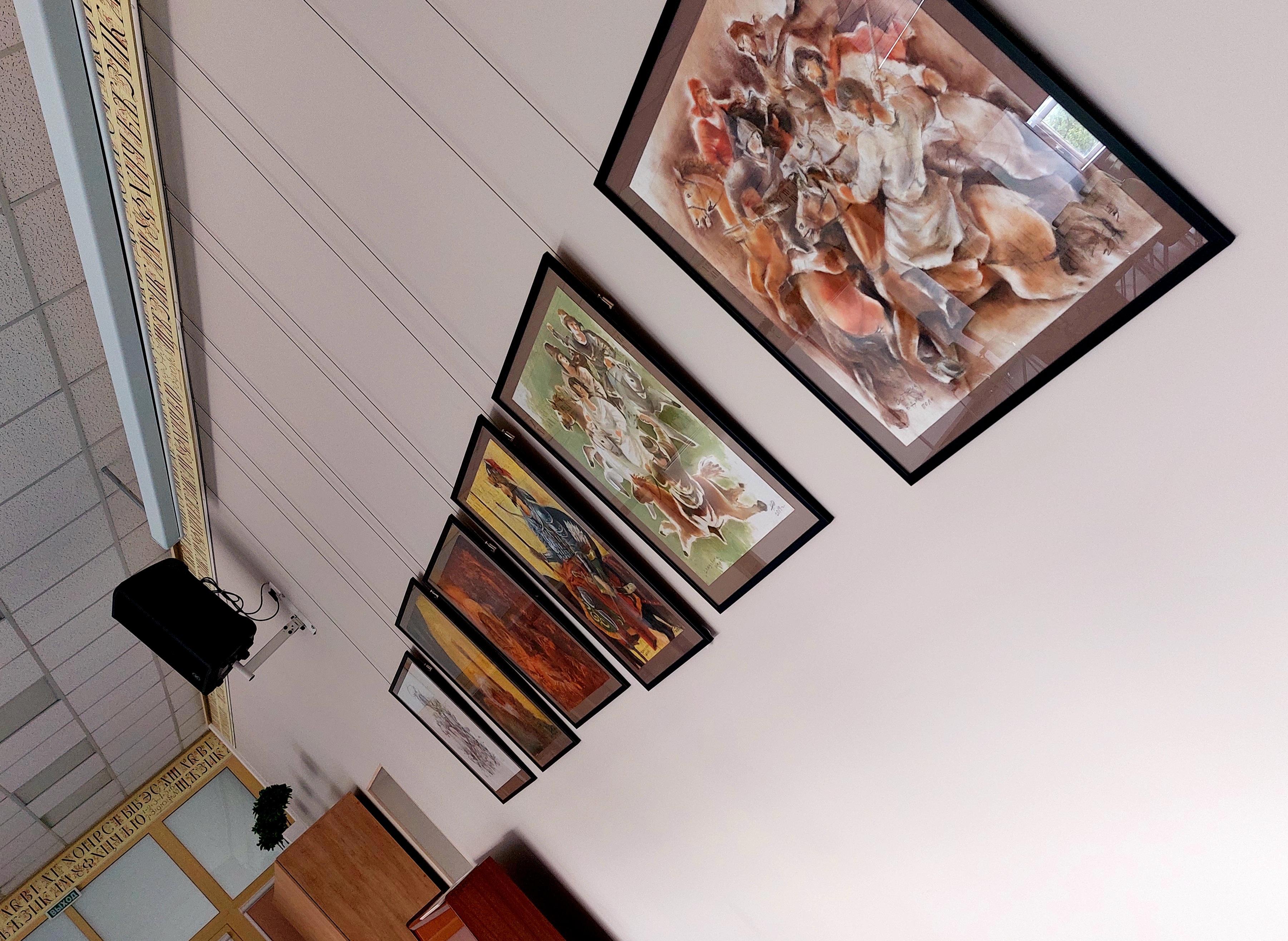 В большом конференц-зале третьего этажа родимой Шишковки (Алтайская краевая библиотека, г. Барнаул, ул. Молодёжная, 5), доступна взорам небольшая выставка, состоящая всего из шести картин... тем не менее, она весьма гармонично организовала стену.