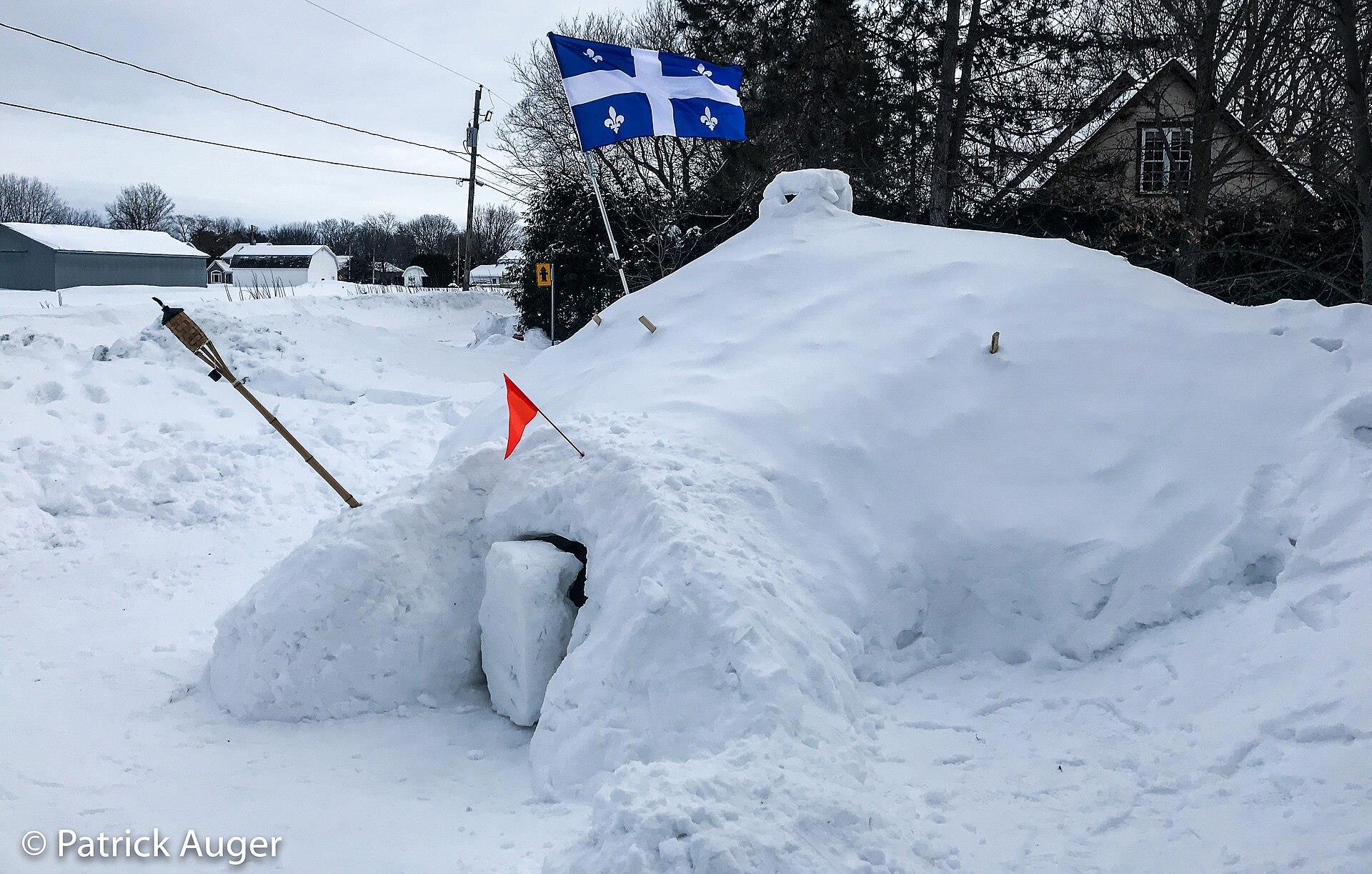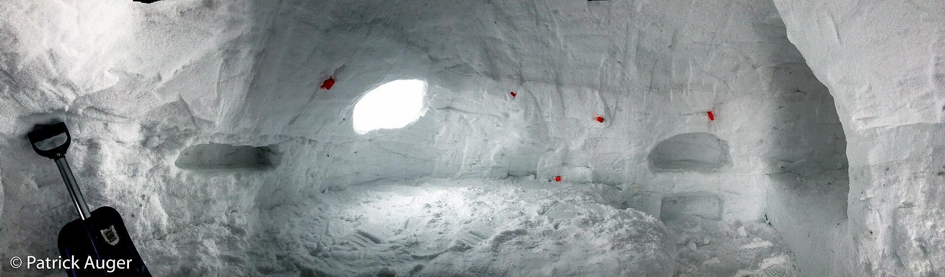 Квинзи (снежная хижина или снежный чум), хотя термин стал популярен среди современных туристов, имеет корни в практике многих северных народов, включая субарктические племена Северной Америки (например, кри, оджибва). В отличие от иглу, квинзи не строят из блоков. Сначала собирают большую кучу рыхлого снега (иногда набрасывая его на каркас из рюкзаков или веток) и дают ей смерзнуться и уплотниться несколько часов (обычно 1.5-3 часа). Затем изнутри выкапывают полость, оставляя стены толщиной около 30 см. Формируют куполообразный потолок для прочности и предотвращения капели. Несмотря на кажущуюся простоту, квинзи обеспечивает отличную защиту. Без дополнительного обогрева температура внутри благодаря теплу людей может подняться до -1°C ... +1°C, а при использовании свечи или горелки легко достичь +12°C и выше. Это было идеальное укрытие для охотников в тайге или для групп туристов, когда глубокого наста для иглу не было.