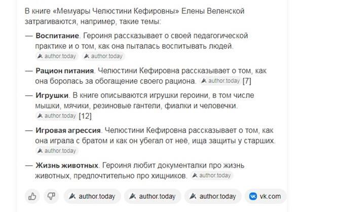 Автор: Елена ВеленскаяЗадала яндексу вопрос о том, какие темы затронуты в моей книге "Мемуары Челюстини Кефировны". Так вот прям всё по-серьезному