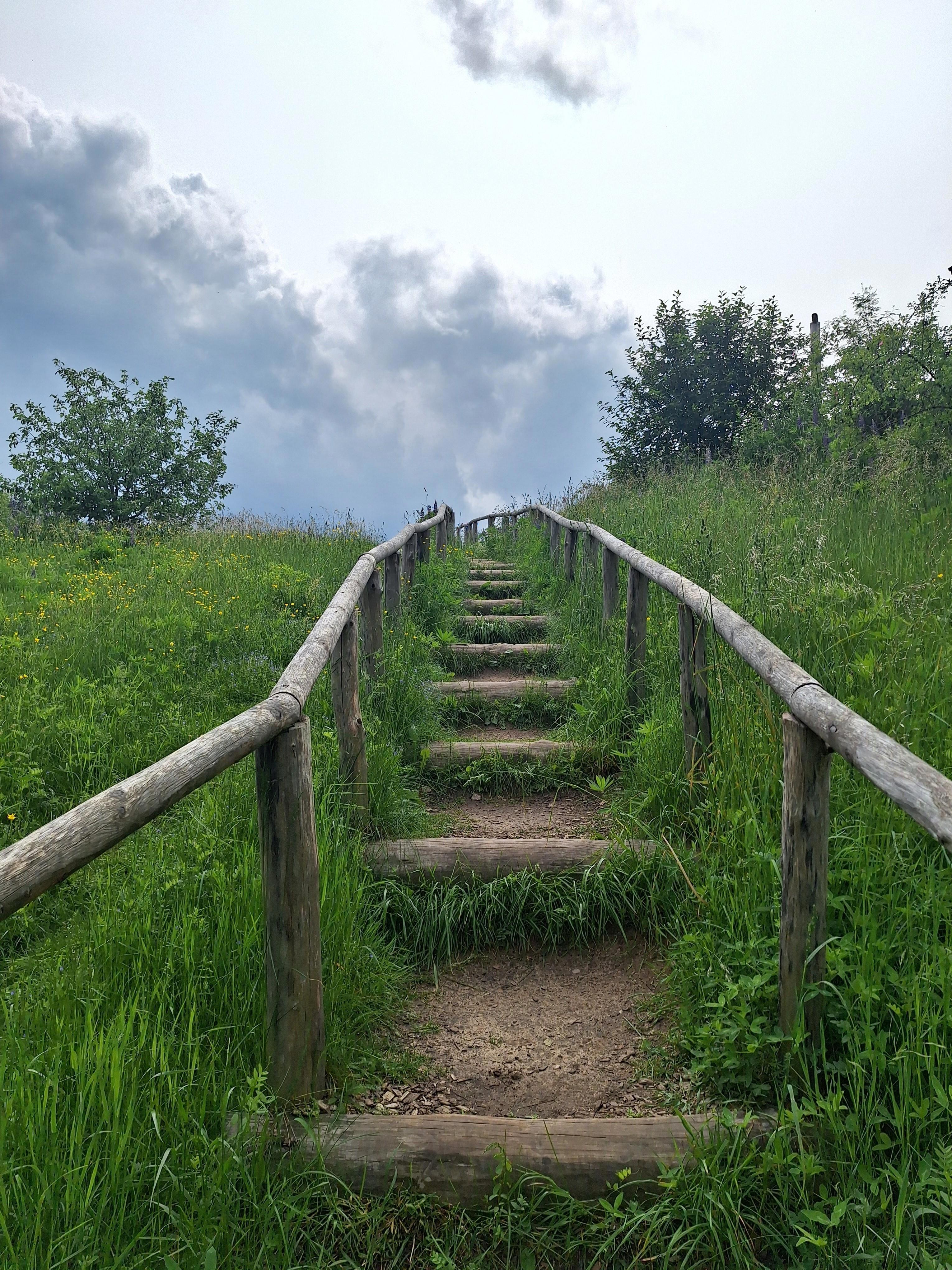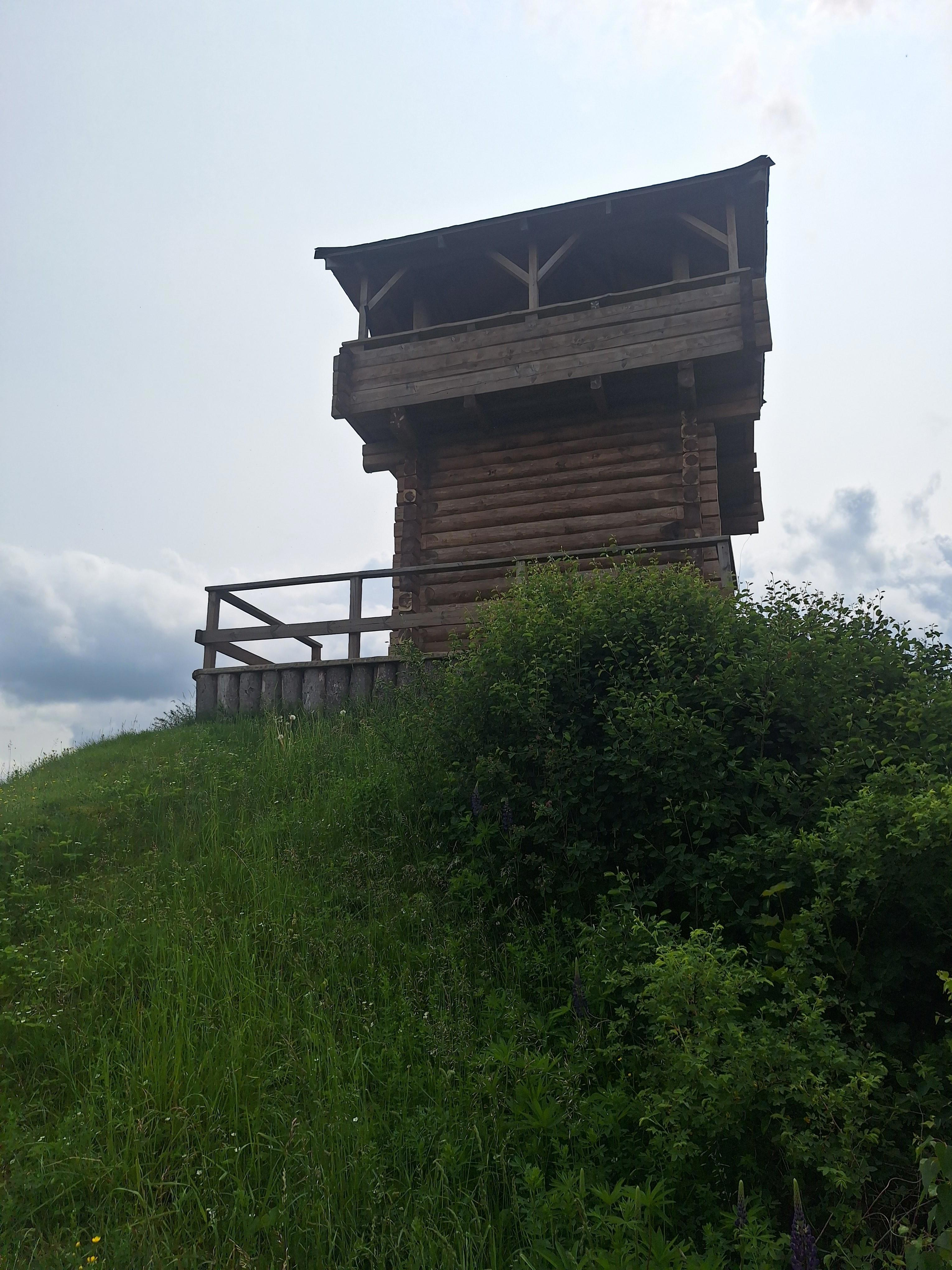 Путь к восстановленной дозорной башне - от нее остался лишь фундамент, да и тот нашли при раскопках, - и немного видов с нее.