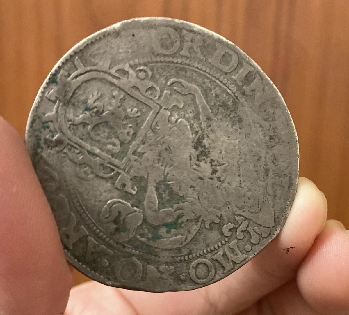 И эту монету — левендальдер — не очень-то получится зажимать в кулак, во всяком случае, мне это было неудобно, уж больно велика монета. И нет, она не моя — мне дали ее подержать, чтобы я могла вдохновиться на описание жизни в Нидерландах в Бургундском цикле. Потому что она 1576 года! Одна из первых. И наши герои — в том числе Александр де Бретей — вот с этим имели дело.