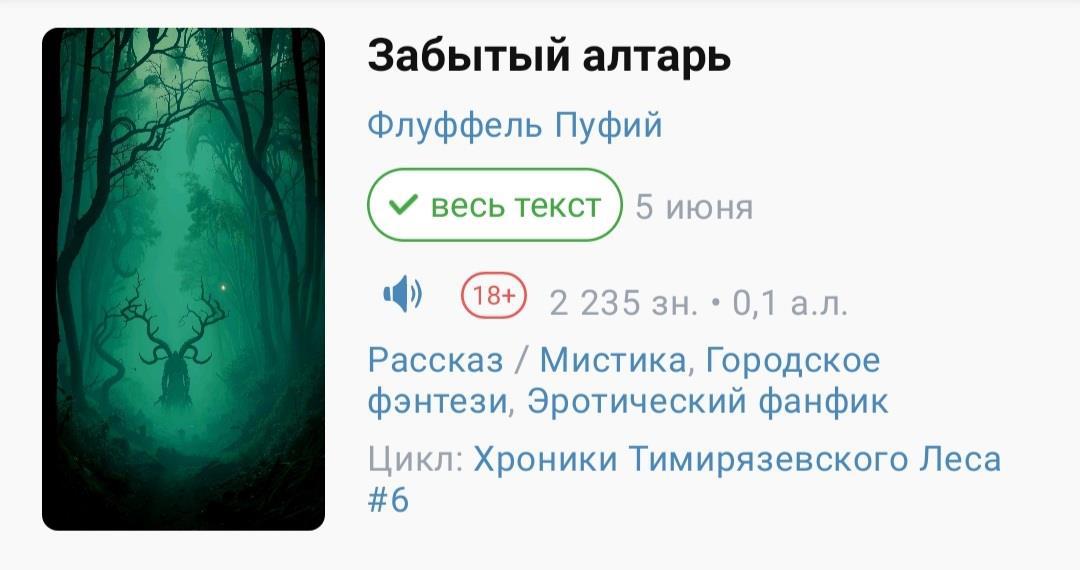 Рассказ является шестой частью цикла «Хроники Тимирязевского Леса». Его аннотация состоит из одного провокационного вопроса: «Кого сегодня обслужит гнилой грехослужитель?». Данный приём усиливает ощущение контролирования этого места Тьмой.
