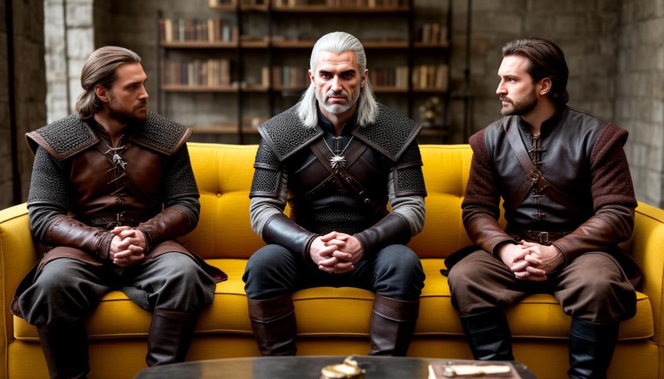 Геральт вошел, аккуратно прикрыв дверь. Кроме вольготно развалившейся в кресле девушки, в комнате были два здоровенных молодых мужика, в поношенных средневековых доспехах, смущенно сидевших по краям желтого диванчика.