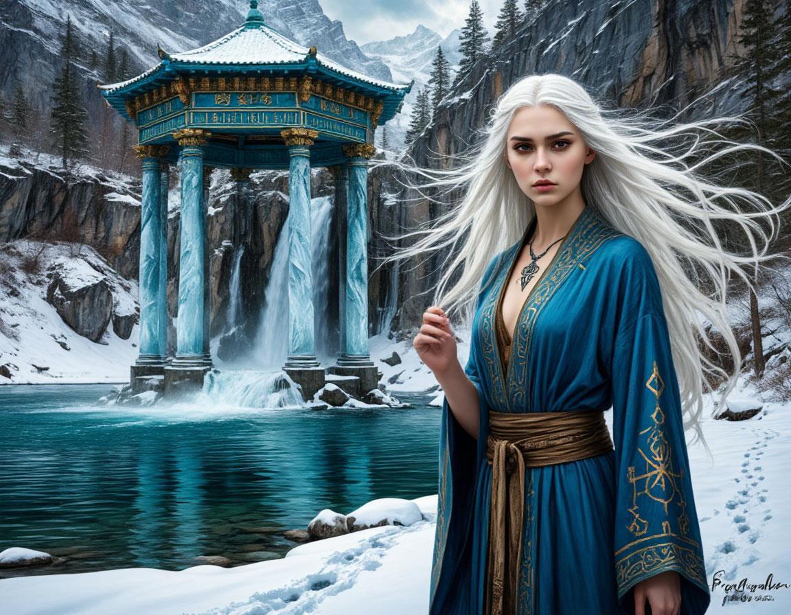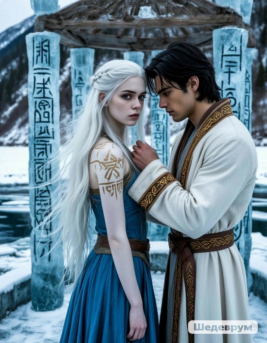 Виликор медленно открыла глаза, словно не веря, что все позади, отпустила мою руку и сделала несколько шагов по снегу, оглядываясь вокруг. Синяя, уходящая вдаль синева круглого горного озера, легкий пар над ним – видимо в глубине его подпитывают горячие источники. Горная река, словно извилистый молодой дракон, скрывалась подо льдом спускаясь между горных пиков. В конце пути сверкающий голубой лёд больше не мог сдерживать бушующего напора, и вода падала вниз, выбивая ледяные брызги и нарушая гладь озера. Сбоку от водопада примостилась небольшая беседка с величественными прозрачными ледяными колоннами. Внутри колонн горели неровным огнем неизвестные символы Древних. Они пульсировали словно в такт невидимому сердцу.