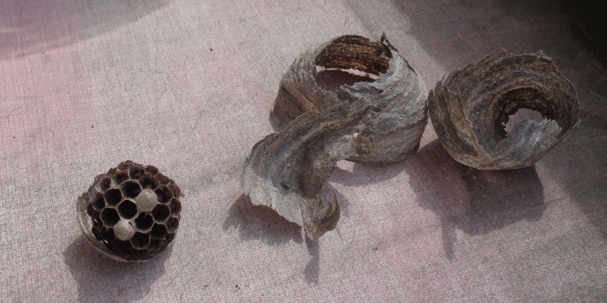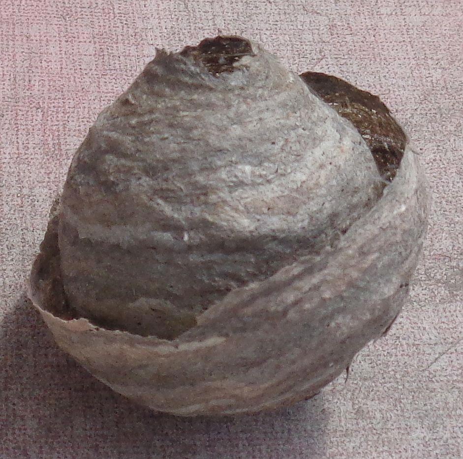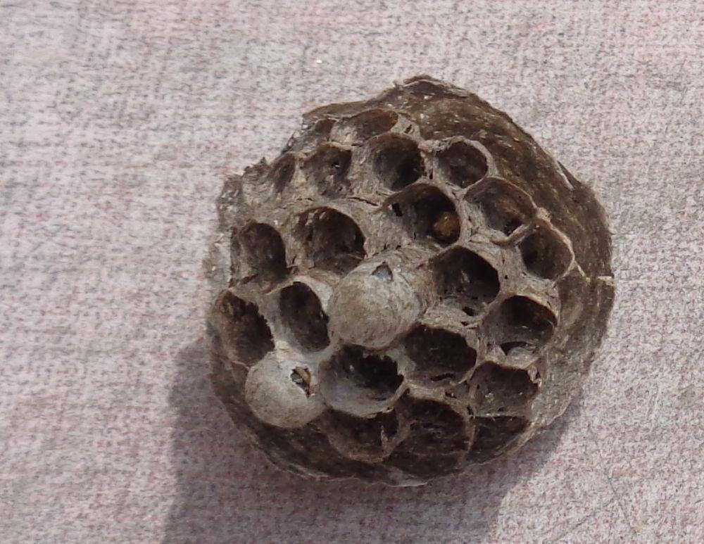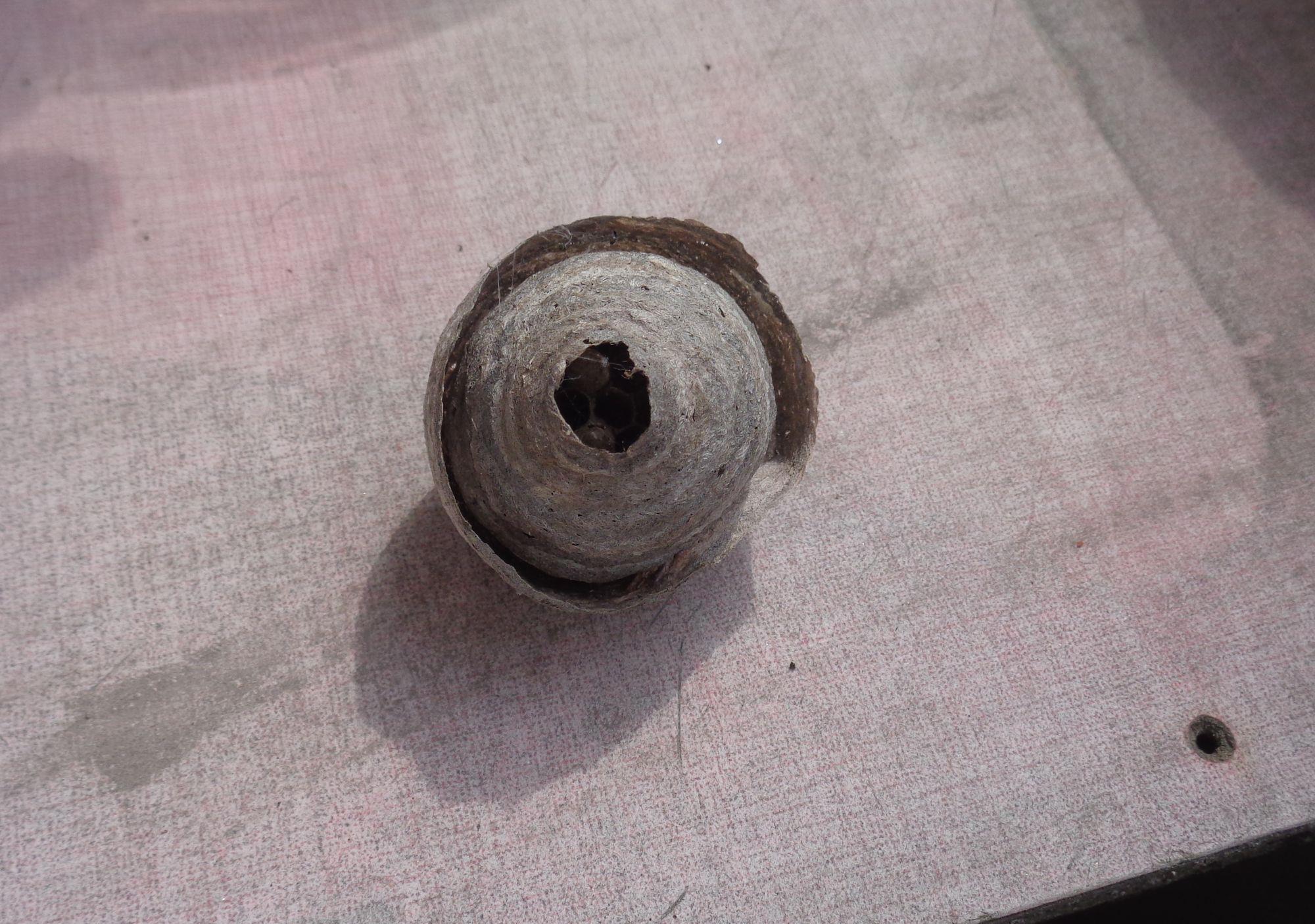 С осами ещё интереснее. Оказывается, они свили себе гнездо на нашем балконе, внутри тумбочки. Её дверка плотно не закрывается, они воспользовались и прикрепили небольшое гнёздышко, величиной со среднее куриное яйцо, к одной из полок. Сегодня я его обнаружила. пустое. Скорее всего, они тут жили год назад, не меньше.