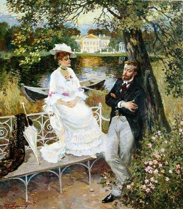 "Сегодня Невзоров уговорил Соню отправиться на прогулку в парк. День был прекрасный. Над обнаженными сводами деревьев сияло изумрудное небо, а внизу осколками кристаллов сверкал снег. Сама зимняя погода подчеркивала лучистую красоту юной графини. Она разрумянилась, непокорные волосы выбились из-под маленькой меховой шапочки. Взгляды гуляющих восторженно провожали ее ладненькую фигурку, что наполняло Сергея гордостью, а радость скорым обладанием таким сокровищем заглушила вспыхнувшие вчера сомнения.