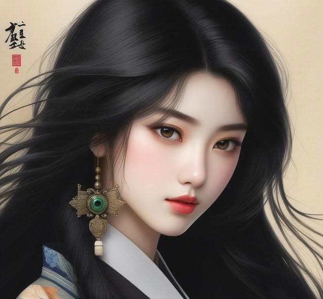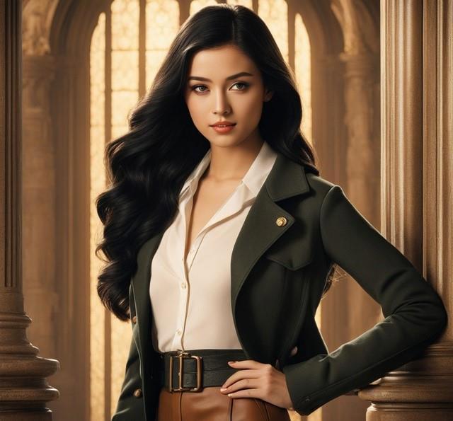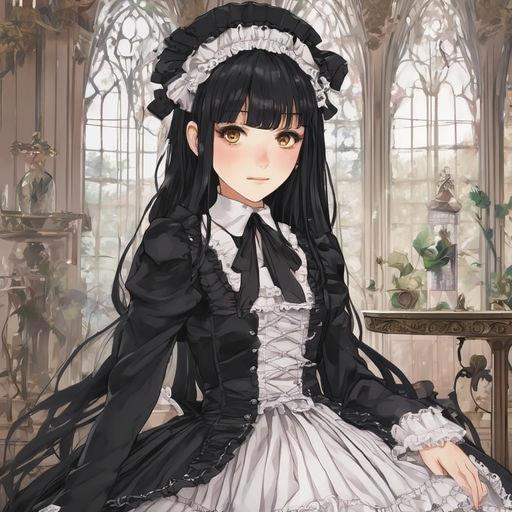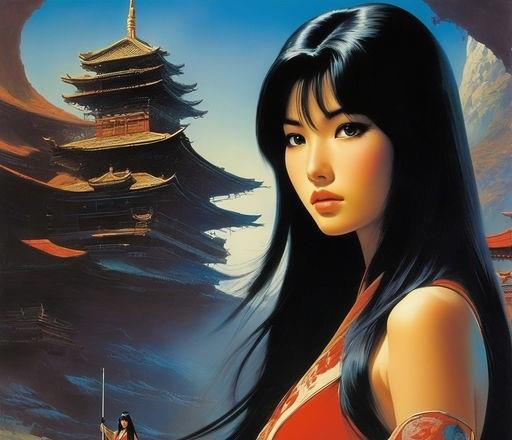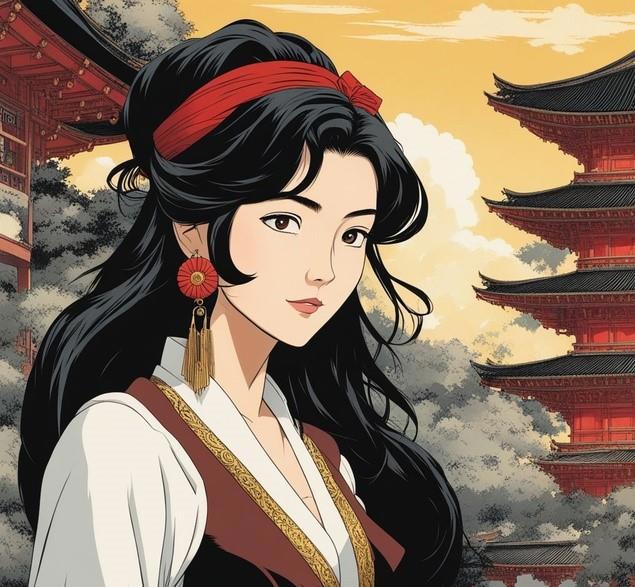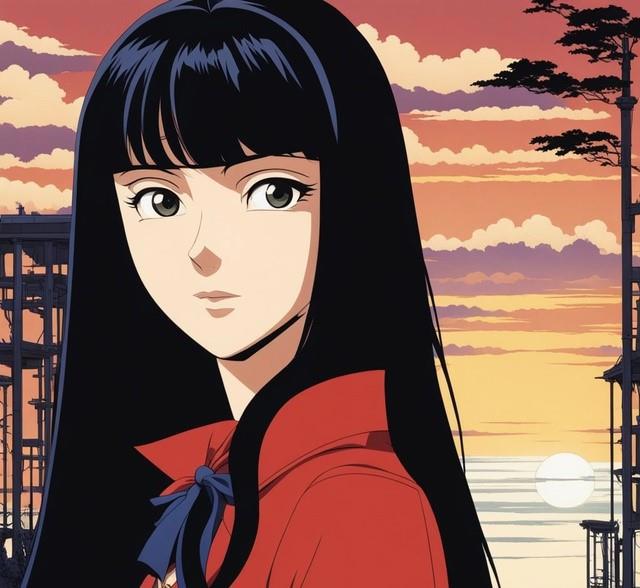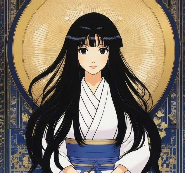 Шестнадцатилетняя девушка японка с очень длинными черными волосами и черными глазами