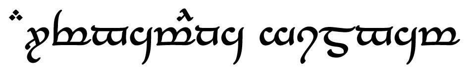 Надпись тенгвар на Чёрном наречии: DU RB TA NA GI MB AT