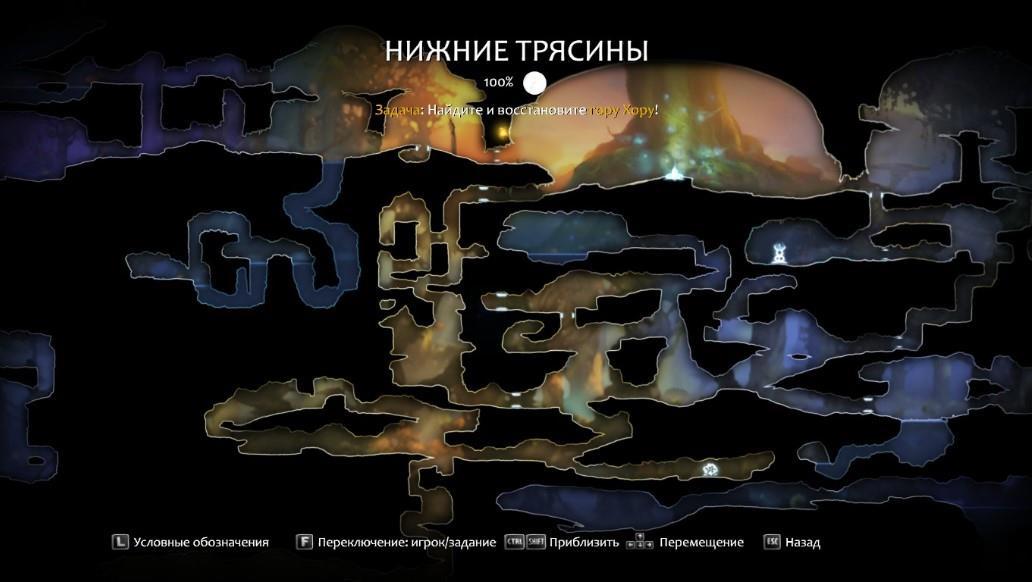 К слову, DE очень странно считает секреты. Ачивку «No Stone Unturned» (мне лень переключать Steam на русский, чтобы узнать, как она там называется в переводе) я получил на середине Горы Хору, когда я точно знал, что пропустил одну секретку в видоизменяемой части в Туманном Лесу (я так и не понял, как её оттуда достать), абилки второй ветки высвечивали на карте ещё минимум два тайника, а в Верхних Трясинах на карте стабильно высвечивалась уже взятая секретка.
