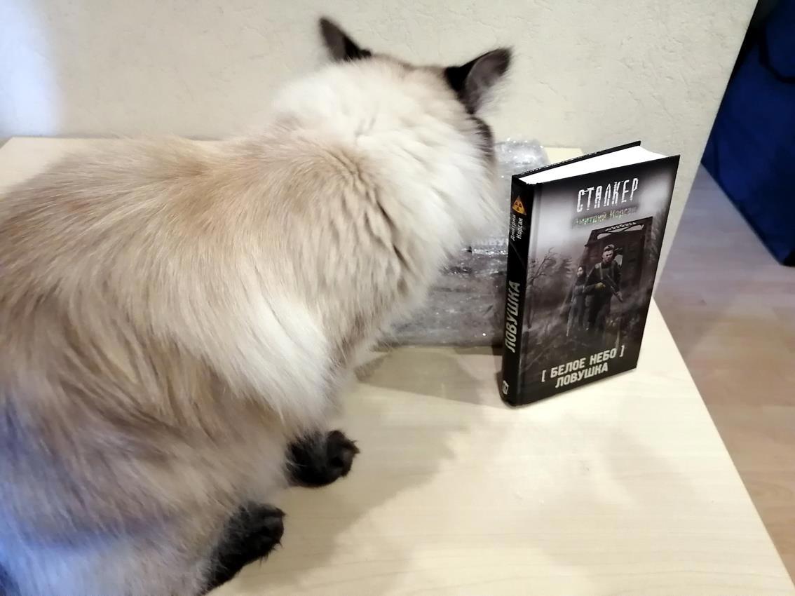 Автор: Дмитрий КорсакЗабрал на почте авторские экземпляры "Ловушки". Не успел распаковать, как тут же нарисовался первый читатель. Обнюхал, проверил когтем упаковку и уселся на фотосессию. Автограф, заметьте, не попросил.