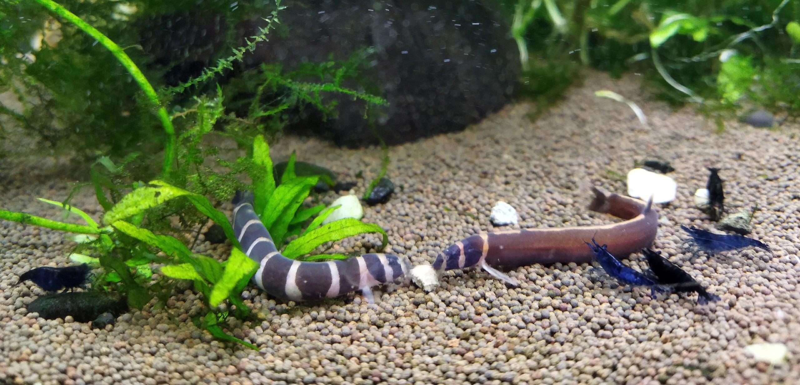 P.S. фото аквариумной живности, не идущей на контакт) Обед акантофтальмусов и креветок Blue Dream)