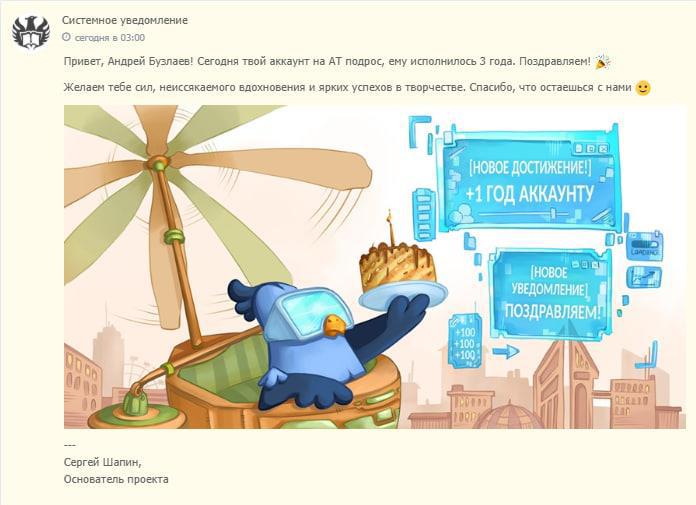 Мне сегодня вот какое оповещение пришло: