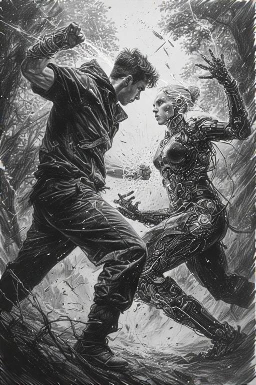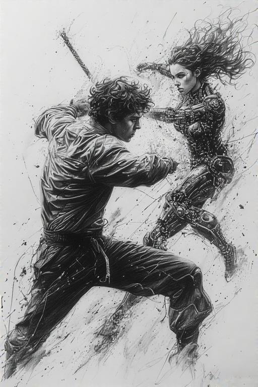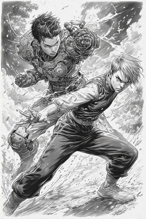 Это вариации на тему обложки, заодно эксперименты со стилями. Мишка сражается с Гертрудой.