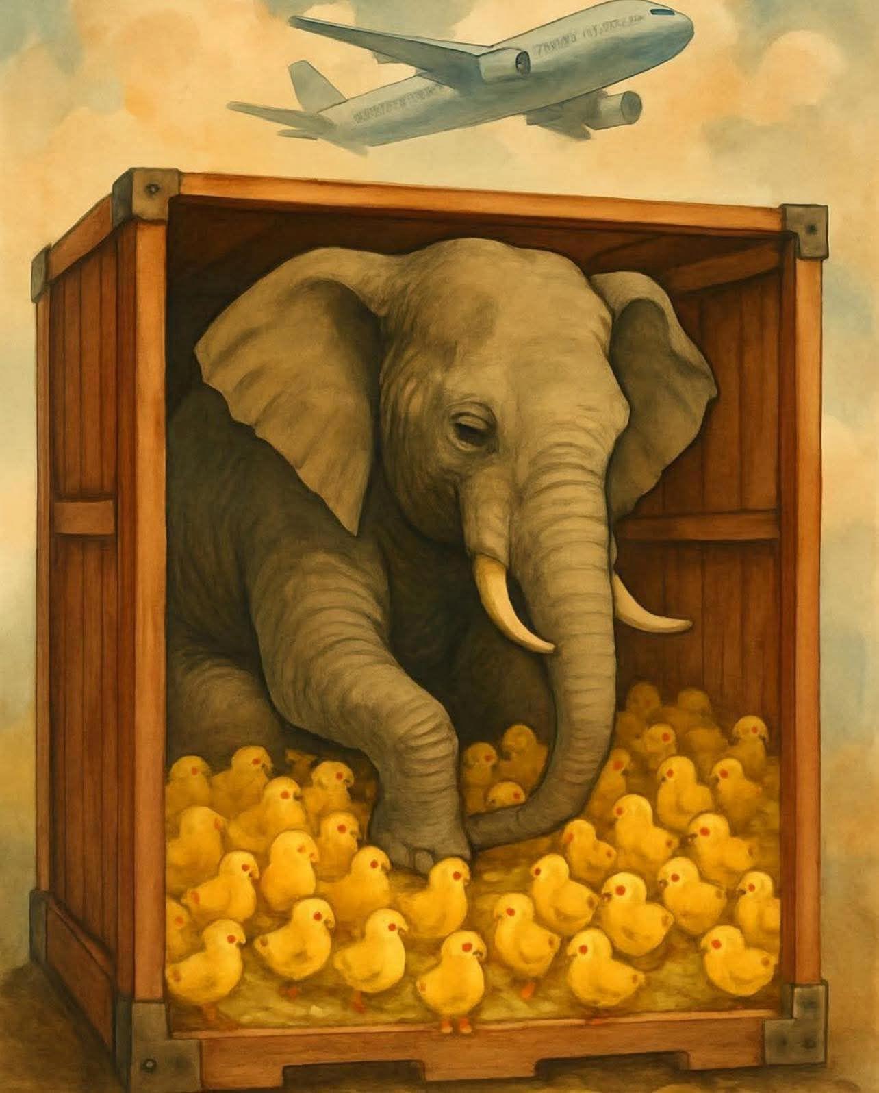 Когда слона нужно перевезти самолётом из одной страны в другую – например, из Индии в США – его клетку наполняют… маленькими цыплятами. Да, вы не ошиблись: именно крошечными птенцами.