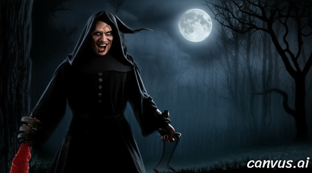 Задача:"ужасы лес ночь радостный средневековый палач-фанатик увидел жертву"