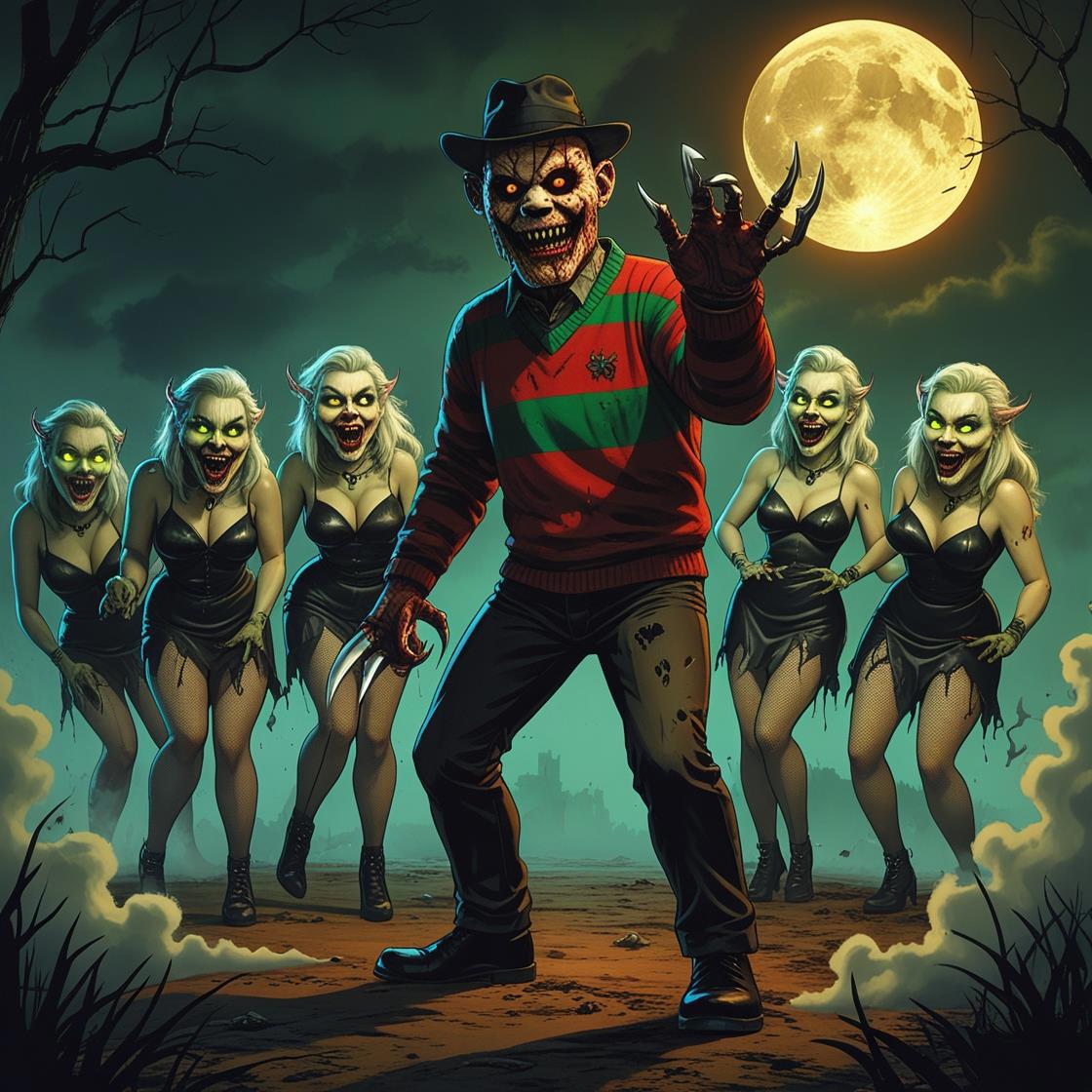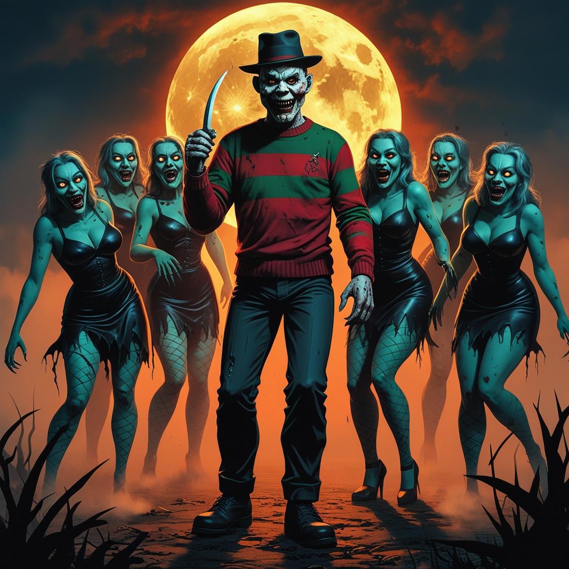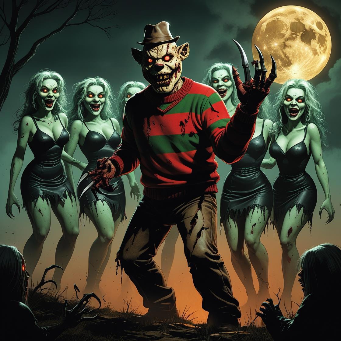 А вот на такую вечернику я бы сходил, хотя зачем Фредди взял секатор, история умалчивает