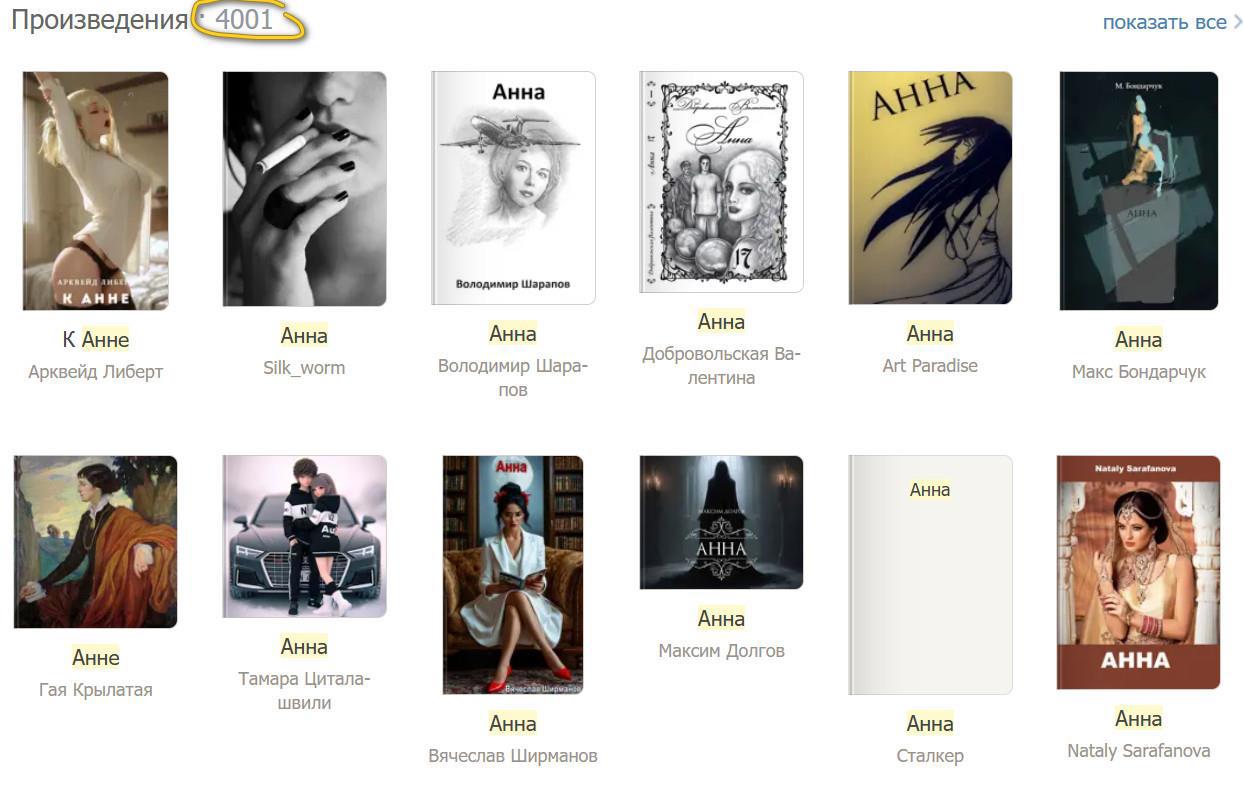 Тратятся часы, сутки, иногда месяцы, чтоб придумать название своему роману, повести, рассказу или циклу. Провел сравнительный анализ на АТ. Обнаружил что самый распространенный заголовок романов и произведений АННА. АННЕ, К АННЕ, АннА. Как не запутаться и как отличить четырнадцать АНН на АТ от АННы, которая в самиздате на Литресе и Ридеро и романа Анна от А. Аненской и от Анны на шее. «Как корабль назовешь так он и поплывет» - известная сентенция. Дорогие мои коллеги поделитесь своими муками как найти удачное название своему произведению. У кого действительно удачное имя произведения.