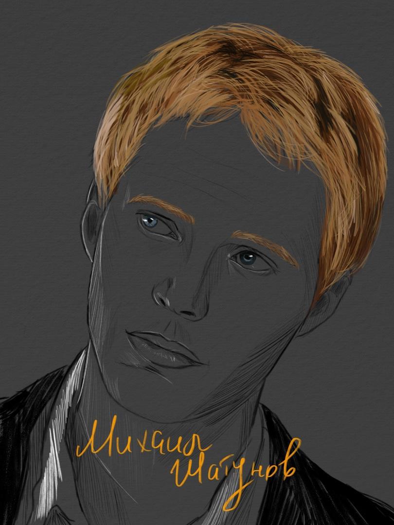 Прилагаю портрет Михаила работы Алины Мальцевой. Веры у меня, к сожалению, нет.