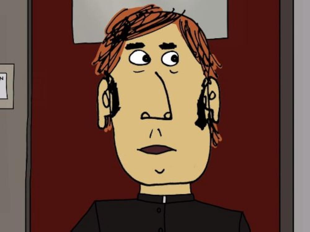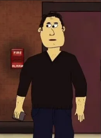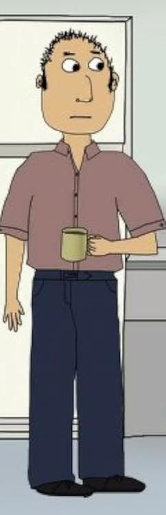 Стью — даун, который голоден до низменных удовольствий, ему больше не надо. Чашка кофе, которую он постоянно держит в руке, спокойно могла бы быть косяком или бутылкой пива. Редкие жидкие волосенки на его узком черепе могут многое вам сказать о том, как Стью поведет себя, когда дело запахнет жареным.