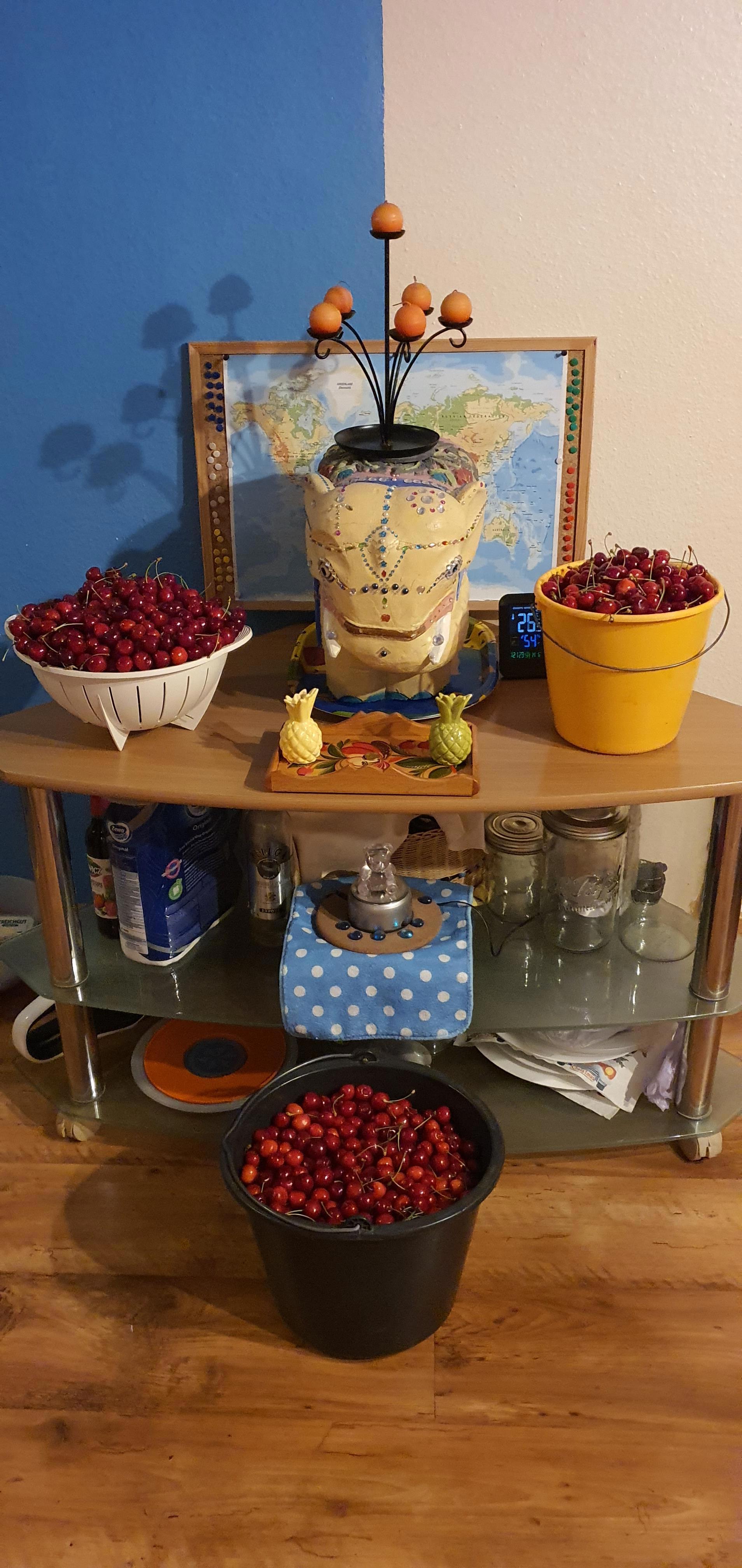 Собрали 19 кг. из них 9 раздали. В этом году черешни дофигища. Может опят полезет в четверг. Но, если кто хочет, то пусть приезжает, и сам собирает.