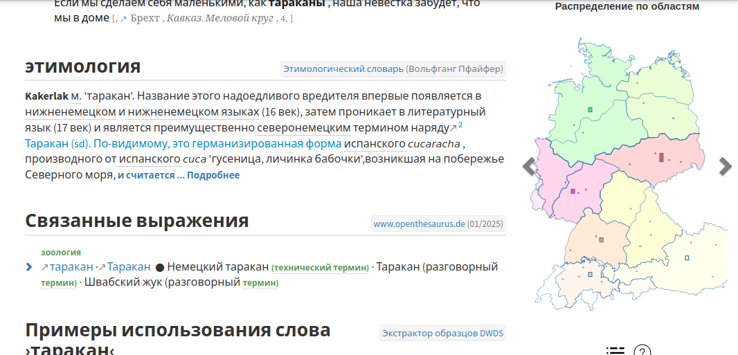 В общем можно проследить и европейскую этимологию Таракана. Кукерлак (нем) Кокроач (англ), Кукарача (исп) и против них Арагонский Эскорабат и Итальянский Скарафаджи
