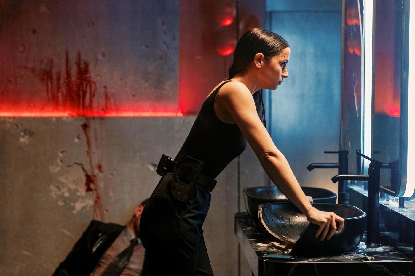 В плюсы безусловно я отношу и то что «Балерина» не фанфик для фанатов Джона Уика. Это полноценная история девушки со своими зрелищными моментами и бонусами. Не забываем, что Кикимора девчонка. Мне очень понравилось как обыграли пол и слабость женщин-киллеров. Наставница прямо так и говорит героине: «Ты всегда будешь слабой. Ты всегда будешь с ними не на равных. Используй свои сильные стороны и их слабые. Дерись как девчонка!» И Ана (я не ошибся с одной «н») де Армас актриса испано-кубинского происхождения (красотка, сил нет) так и делает использует всё что под рукой. Даже коньки. Так же к плюсам отнесу динамичность картины 130 минут смотрится динамично, серьёзного экранного времени не замечаешь именно потому что всё лишнее режиссёр Лен Уайзман (знакомый нам по киноциклу «Другой мир») выкинул к чертям. Первый раз долгострой, с парой-тройкой дополнительных переснятий и раздутым бюджетом получился дельным. Впрочем, не исключаю, что всё лишнее нафиг выкинул папа франшизы Чад Стахелски говорят он любит саблей помахать.