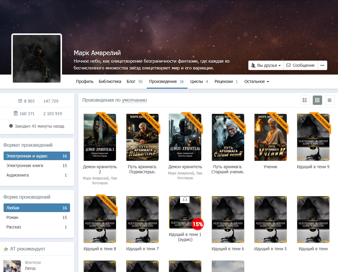 Ссылка для всех заинтересованных: https://author.today/u/mark_amvreliy/series
