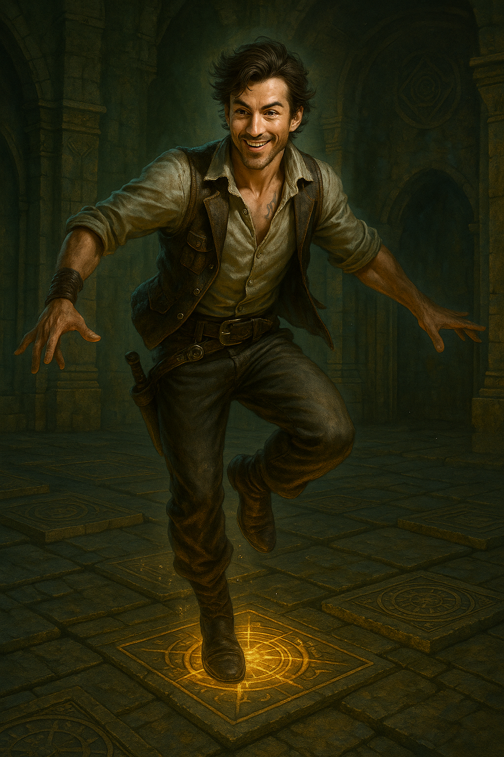 У противоположной стены Артур, изящный, быстрый, проворно продвигался по ряду нажимных плит, двигаясь с немыслимой легкостью, ловко перебираясь с одной на другую. Альберт не сомневался, что в этом пространстве легко ошибиться. Но тот не ошибался — улыбка не сходила с его лица, а движения были похожи на танец. Альберт смотрел на него с недоумением. Артур будто исполнял смертельный танец на грани гибели. И при этом его не покидал веселый настрой. Все было пугающим, но в то же время — волнительным.