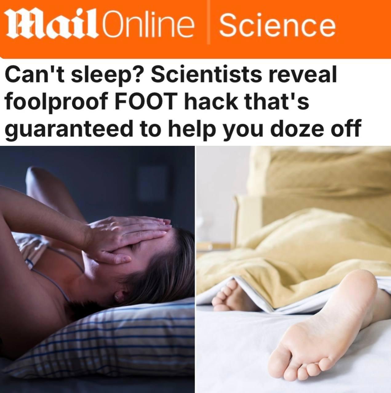 Учёные назвали безотказный способ быстро уснуть и сделать сон качественнее - нужно просто высунуть одну ногу из-под одеяла! Я давно об этом знал! Могу я теперь претендовать на Нобелевскую премию?