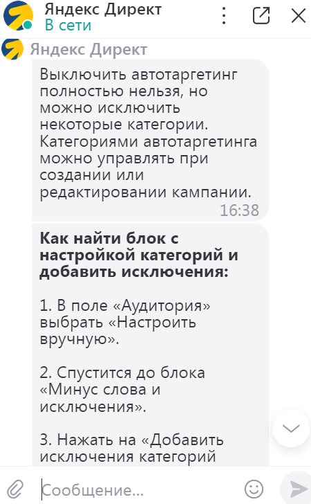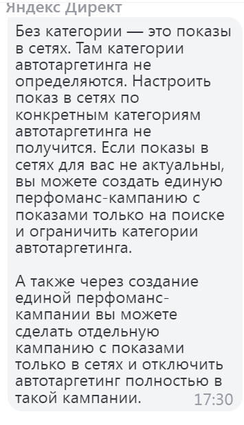 Автотаргетинг работает следующим образом: вводишь ключевые слова "историческое фэнтези", "китайские новеллы" и пр., а тебе предлагают "Вашей аудитории могут подойти такие интересы: beeline.ru. Еще предлагали онлайн-магазин широкого профиля. Все эти рекомендации, не принятые вами прекрасно осуществляются в неотключаемом блоке Автотаргетинг в пункте "Без категории".