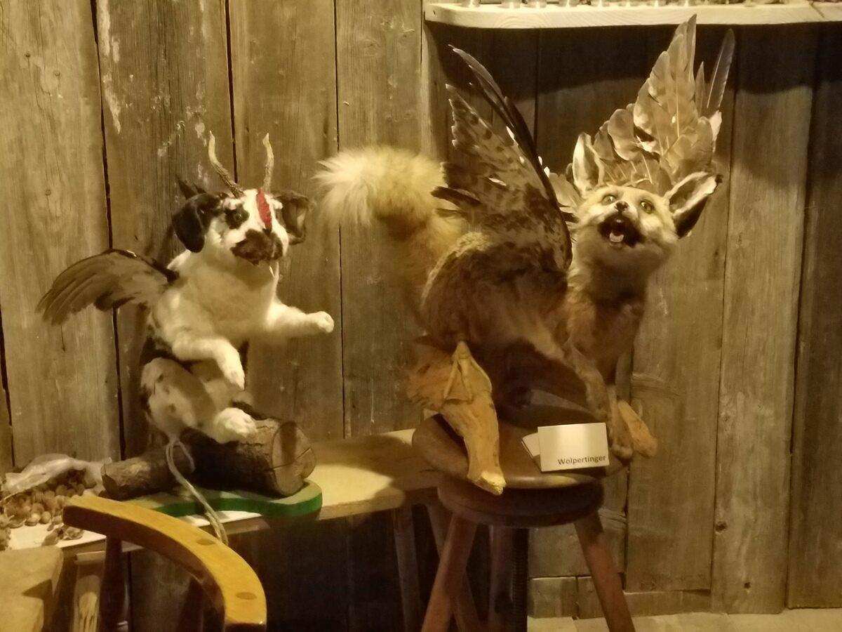 Автор: Кузьмина ОльгаЛисы - волшебные существа, это бесспорно. Пожалуй, самый фантастический образ лисы во всей Западной Европе можно увидеть в Немецком музее охоты и рыболовства в Мюнхене. В этом уникальном музее выставлены чучела вольпертингенов — персонажей баварского фольклора. Обычно вольпертингер — это рогатый заяц, иногда с совиными крыльями и лисьим хвостом. Но среди экспонатов музея есть и чучело вольпертингера с телом лисы, птичьими крыльями и птичьими задними лапами. Из всех экспонатов этот выполнен наиболее мастерски.
