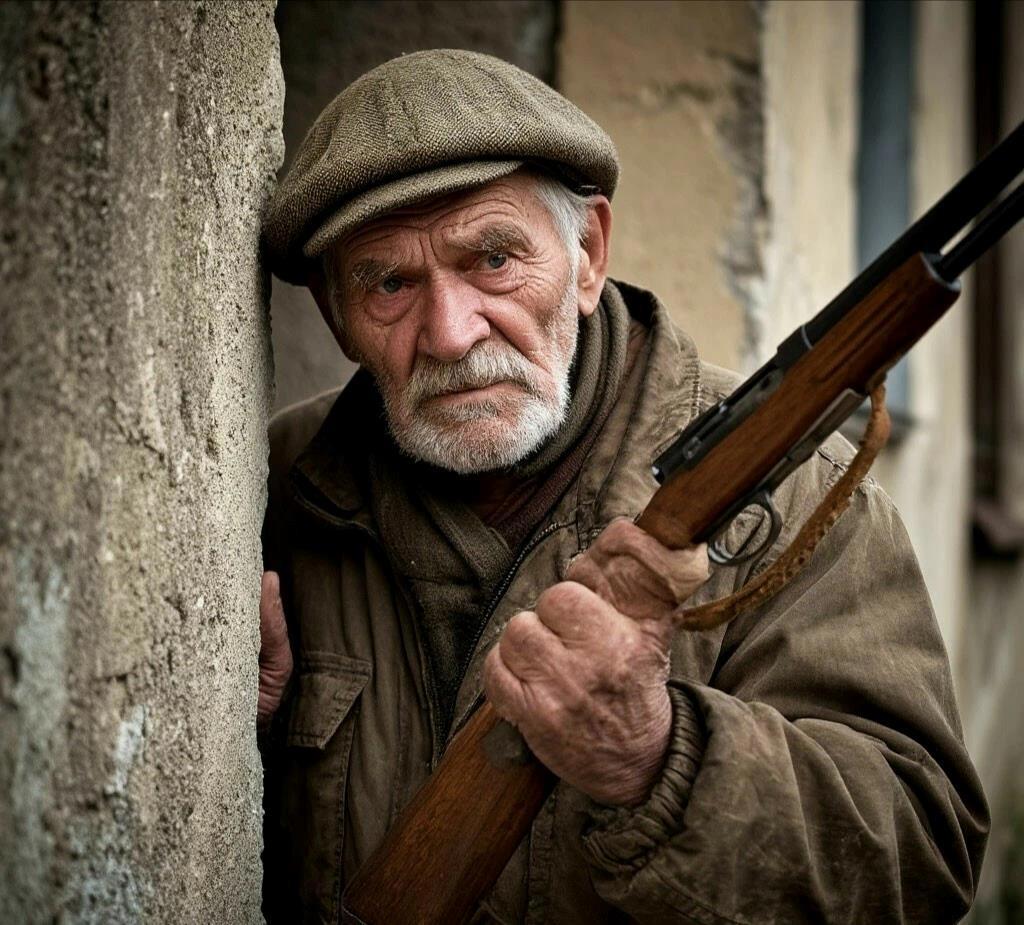 Дед к нему подошел, молча ткнул карабином,