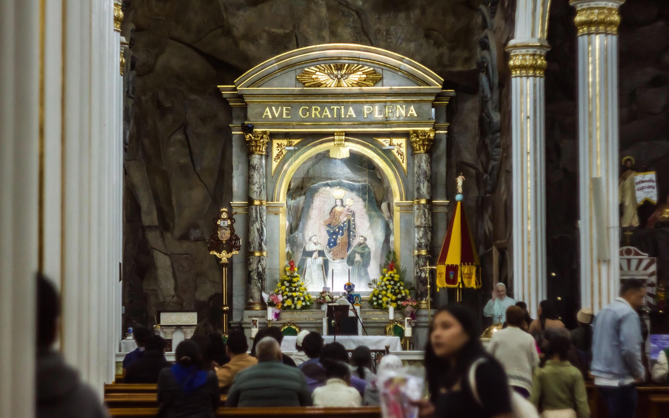 Церковь работает, насколько я поняла по разговорам, до 20:00, и даже без служб тут полно желающих помолиться и что-то попросить у Девы Марии
