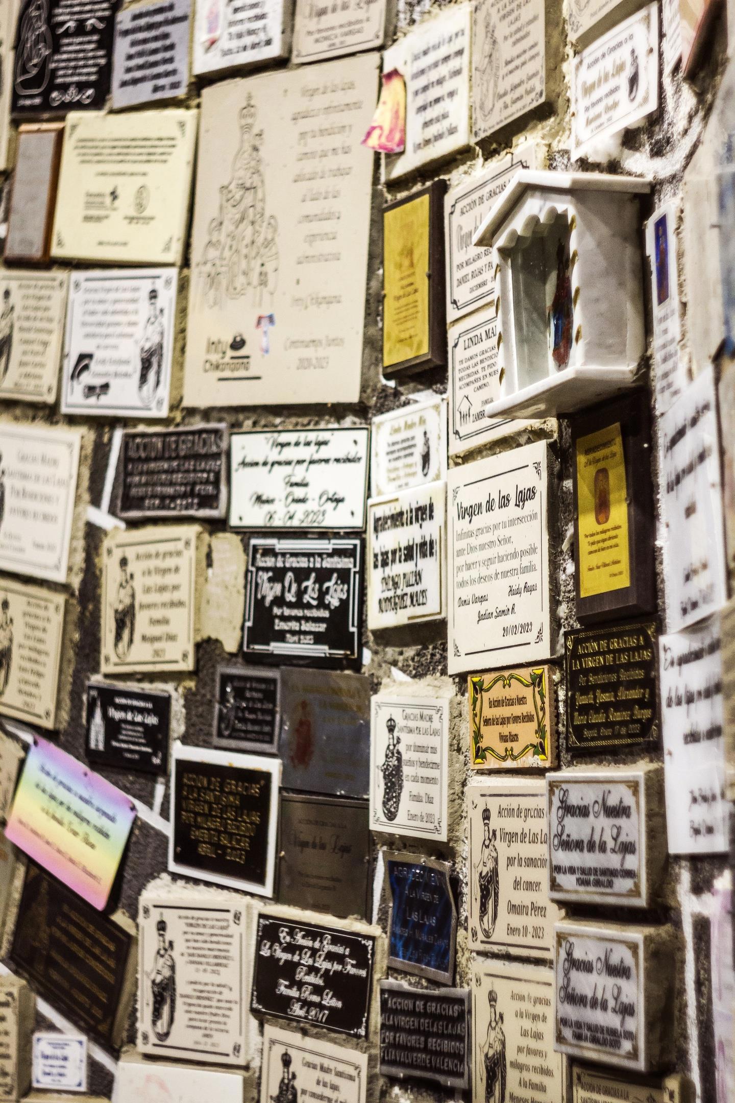 Однако именно этот полтос выручил во время ночной съемки. Возможно, это одно из чудес Девы Марии, которые там творятся регулярно. И совершено безвозмездно, то есть даром. Есть даже целая стена благодарственных табличек матери Христа, подтверждающих тут наличие божественных сил. Ну, потому что колумбийцы и эквадорцы - народ ушлый, за просто так или рекламы ради благодарить не будут. Да и община церковная, хоть и живёт неплохо, вряд ли могла бы оплатить такое количество пиара.