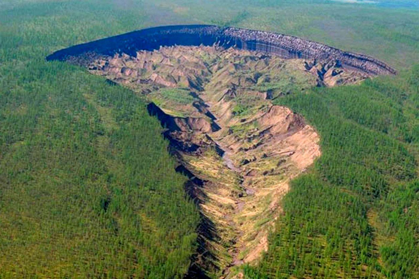 Самая известная и самая большая яма у нас – это так называемая термокарстовая впадина в районе хребта Черского в Верхоянском районе Якутии. Вид у неё просто ужасный: