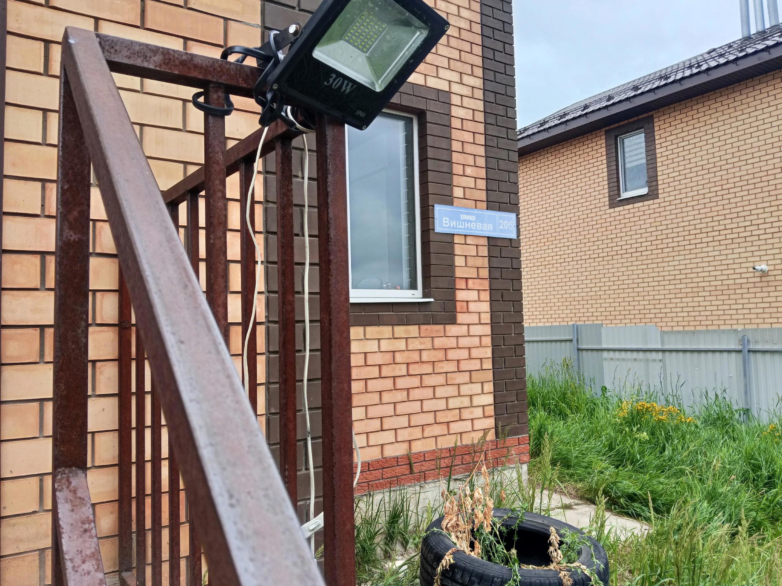 Добавила фотки, где видно, что ни наш, ни соседний дом ни разу не красные.