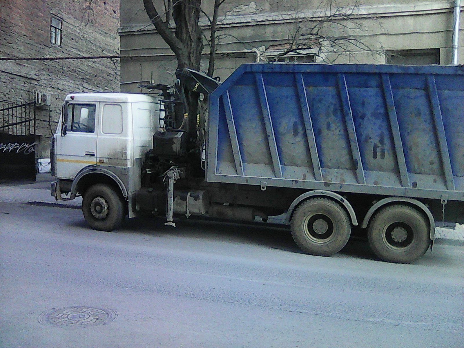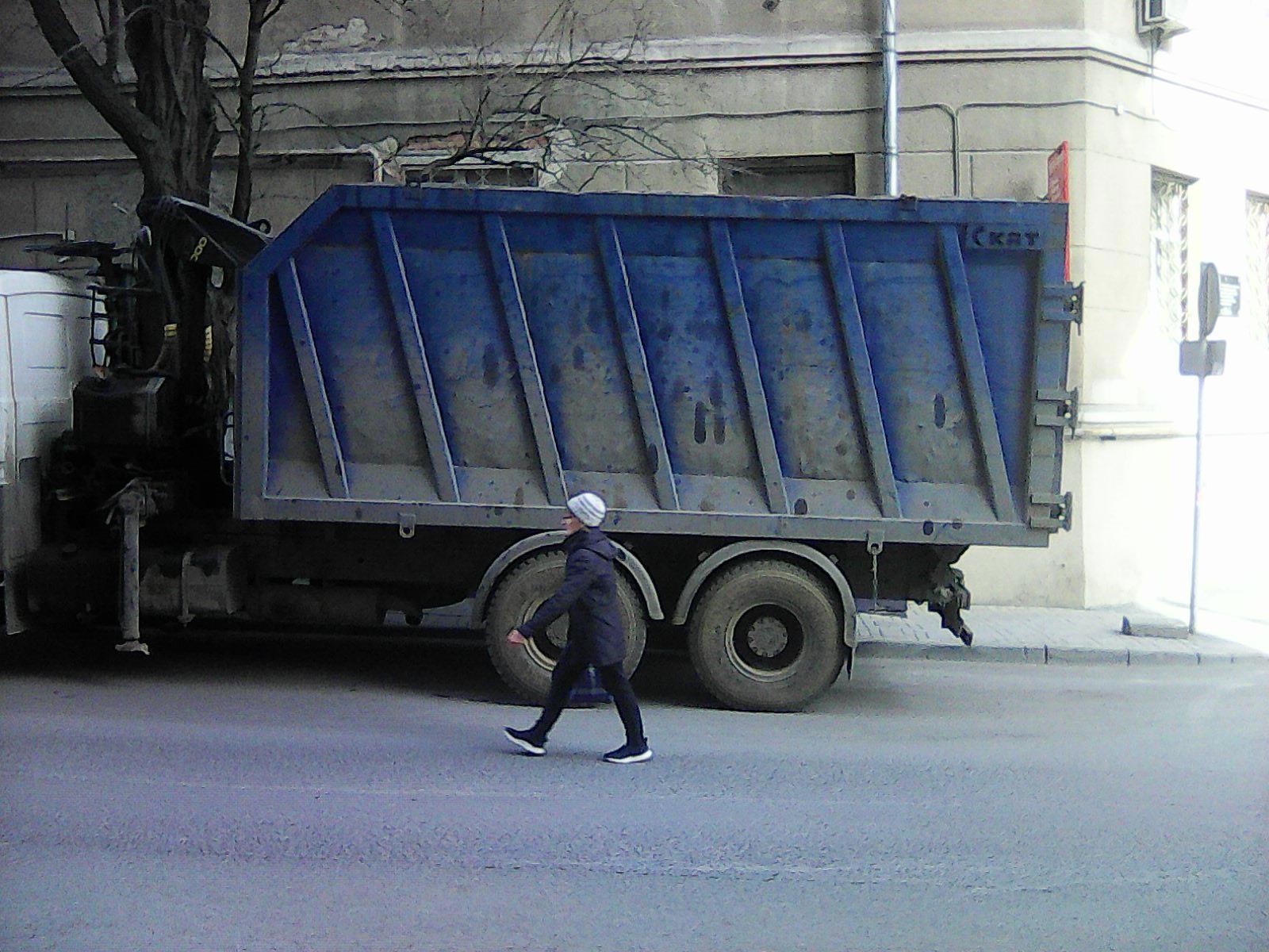 Меня не столько сам мусоровоз впечатлил — хотя он крут и это, скорее, даже самосвал — сколько его кран-клешня, для захвата мусора. Жалко, что на фото её не так хорошо видно: она между кабиной и кузовом.