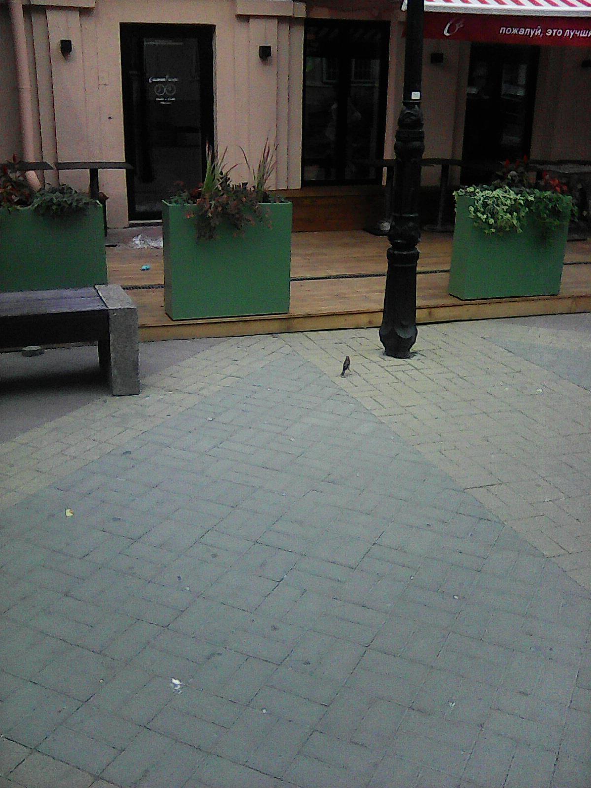 (внизу, слева от столба, маленький воробушек; всё не хотел, чтобы я его сфоткал, но от меня, если мне чего-то надо, не убежишь/не улетишь/не уплывёшь)