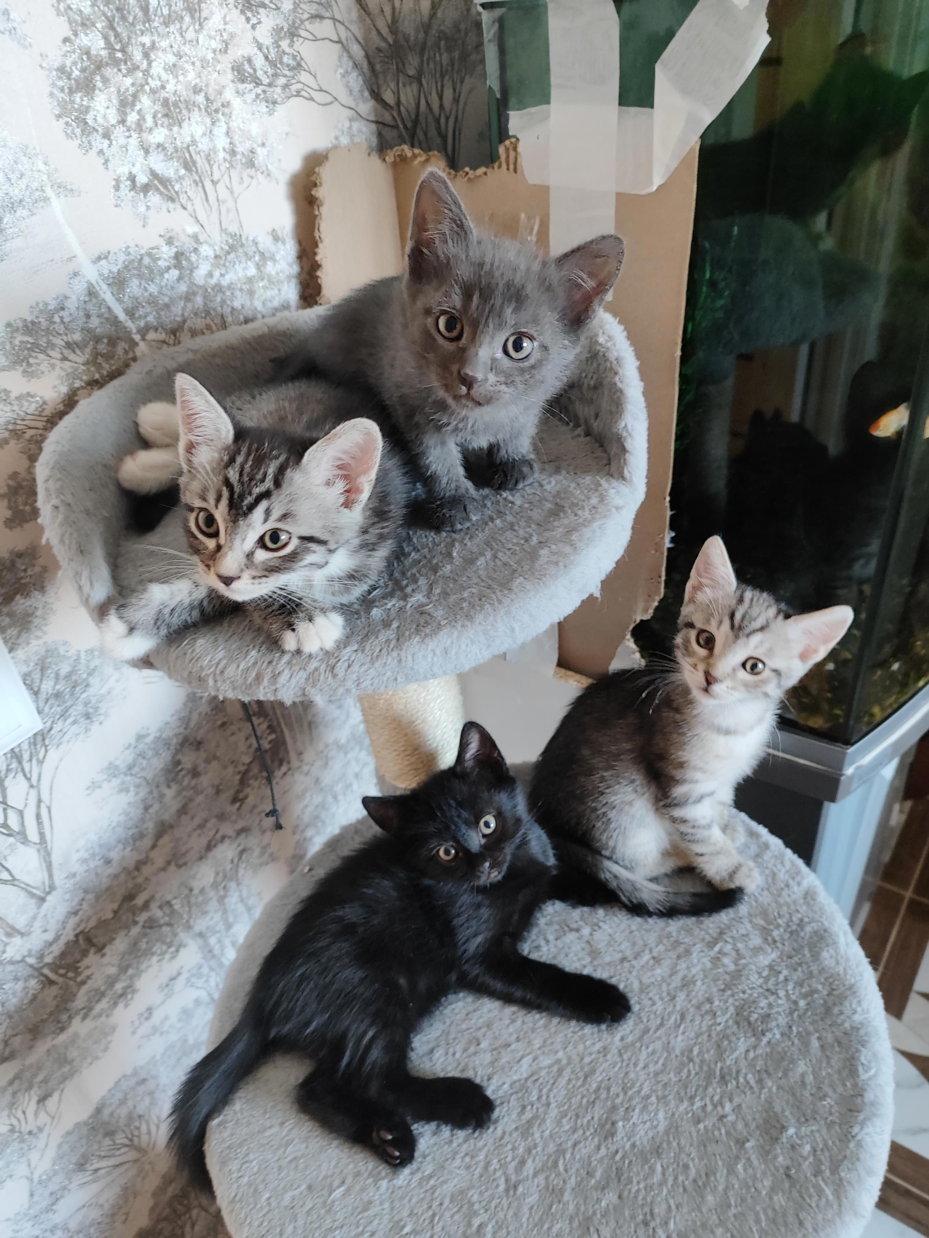 Одну кошечку забрала подруга, здесь на фото их оставалось четверо. Нижнюю пару забрали в частный дом. У них отличные хозяева. Присылают фото. Про серенькую, к сожалению, ничего не знаю. Забрали чужие люди на Авито. А последняя (та, что с беленькими пальчиками) теперь живёт у моей сестры в Ижевске.