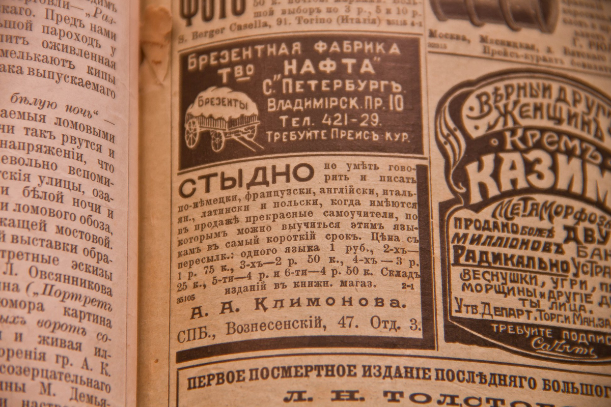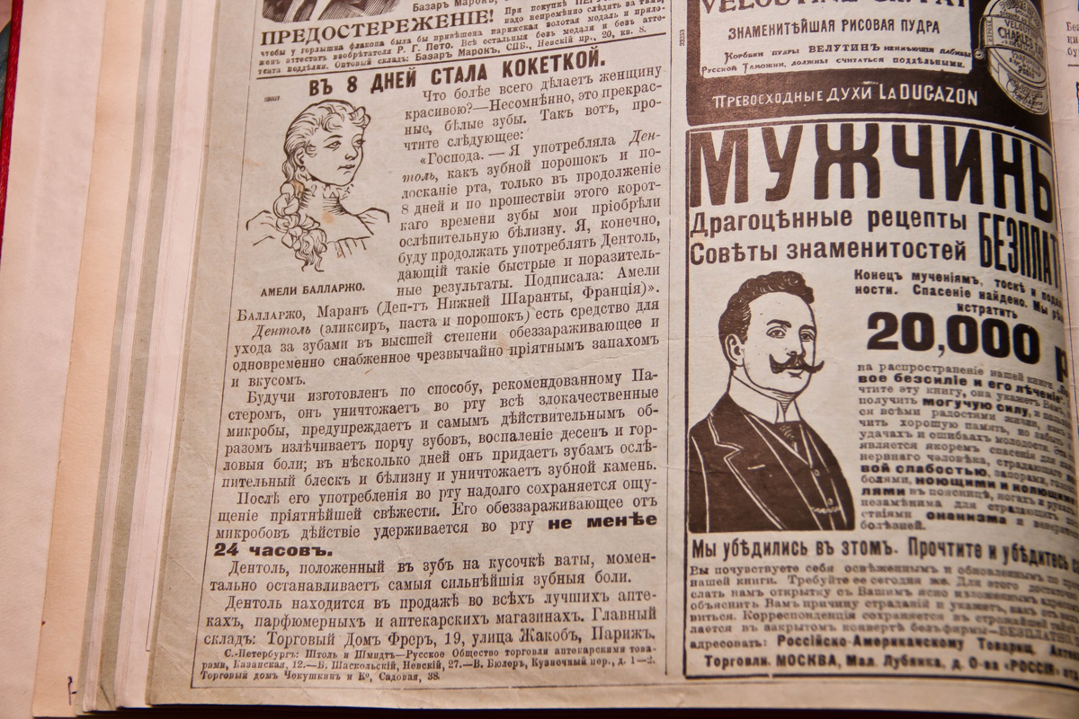 Автор: Irina UrbinaКогда жила в Смоленске и по журналистской работе порой забегала в библиотеку имени Твардовского, то всегда разглядывала журналы начала ХХ века. И не ради творчества поэтов и прозаиков, а ради последних страниц. Страниц с рекламой.