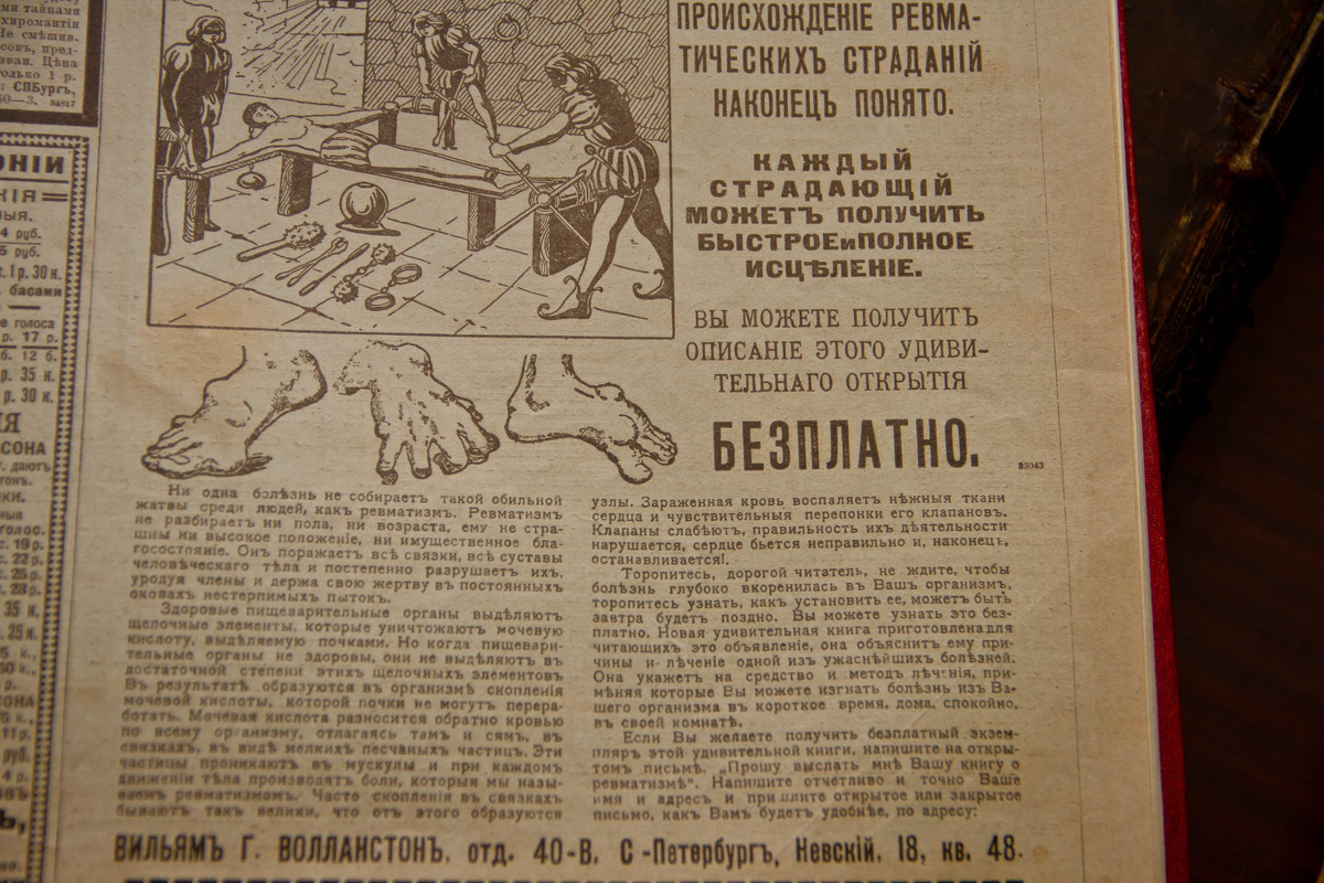 Тут, кстати, не про лекарство от ревматизма, а про... книгу. Которая поможет понять причину и самовылечиться. Да, и в те времена были распространены всяческие целебные брошюры, чей пик потом пришёлся на 90-е. Ну и да, да, да, то самое «безплатно» с З!