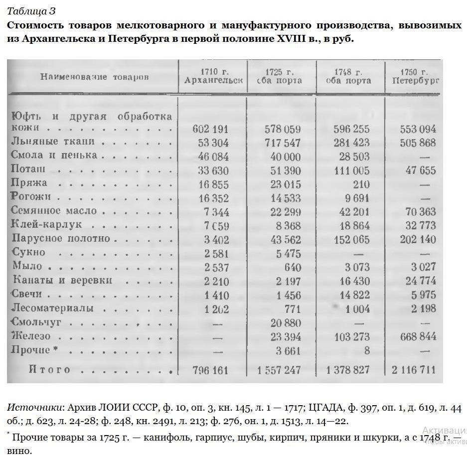 Из Н. Н. Репин. Изменение объема и структуры экспорта Архангельского и Петербургского портов в первой половине XVIII в.