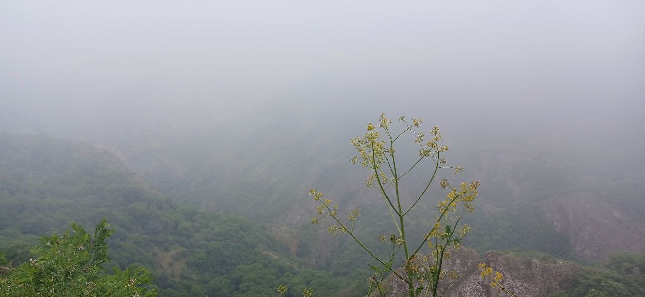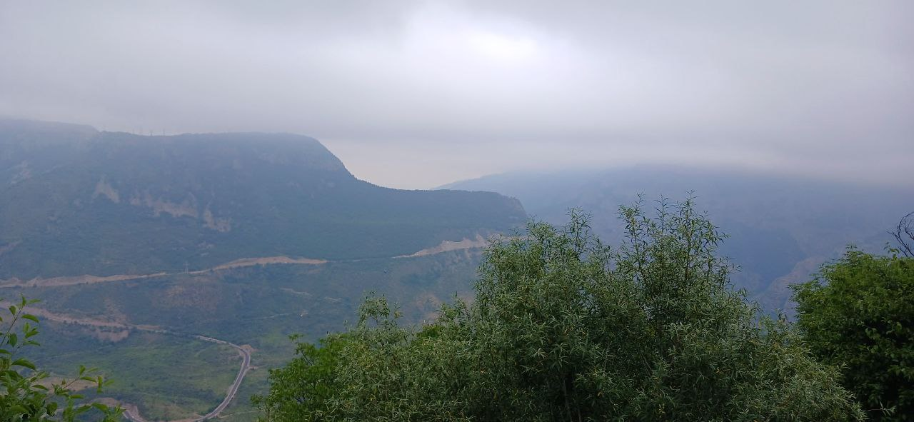 С этой стороны ущелья дорога в Ереван почти прямая, никаких серпантинов, но идёт в облаках: