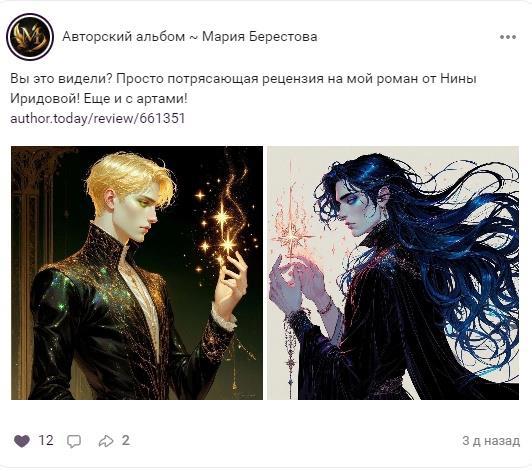 Что ж, в очередной раз я опровергла миф "контакт режет охваты постам с ссылками", потому что пост с ссылкой на рецензию и артами к ней набрал гораздо больше просмотров и реакций, чем пост без ссылки, с цитатой.