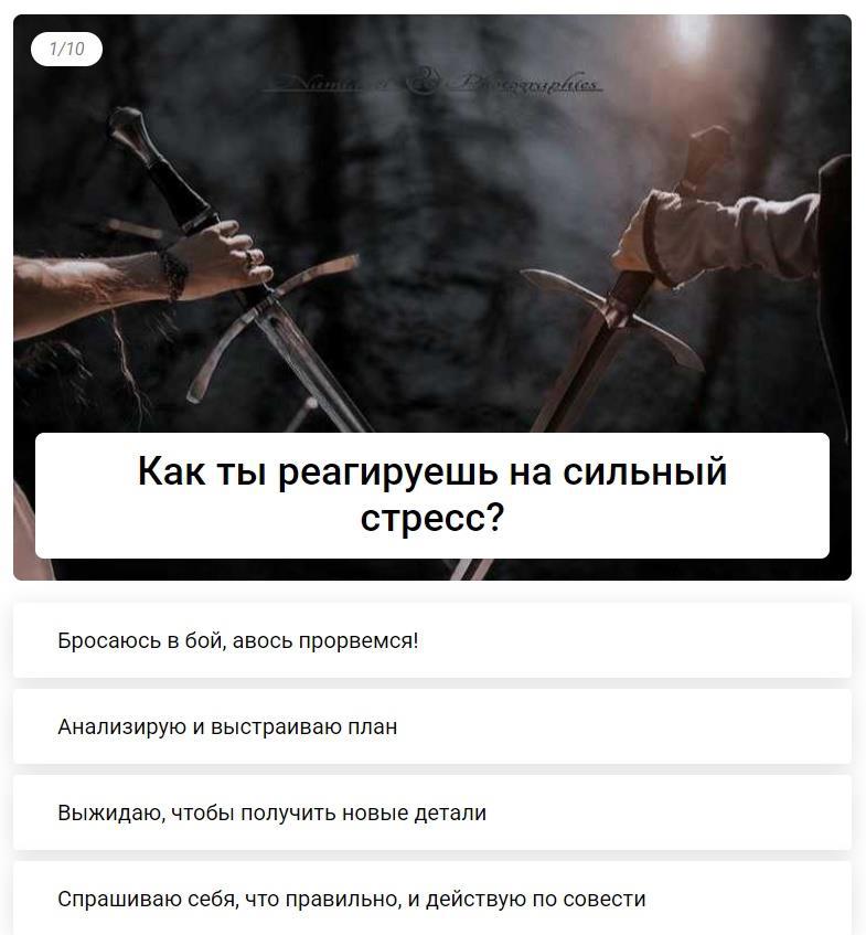 В целом, получилось прикольно, не считая того, что у меня ушло полдня на это дело. Но тест понравился даже тем, кто книгу не читал. А еще инициировал бурное обсуждение в группе моих друзей - это было приятно.
