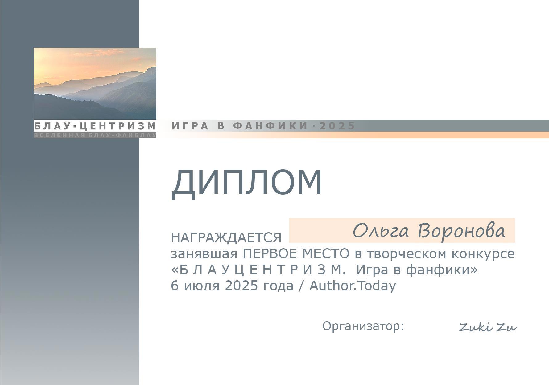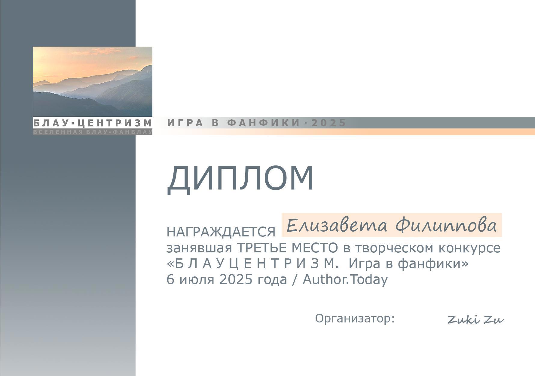 2. Анастасия Рейнгард (17 + 12 = 29 баллов) 3. Feainne (17 + 9 = 26 баллов) 4. Александр Козырев (8 + 12 = 20 баллов) 5. Участник №1 (7 + 12 = 19 баллов) ________________ * ВСЕ РЕЗУЛЬТАТЫ подсчета голосов будут внесены на страницу новостей, а также на страницы всех Работ Участников не позднее 00:00 мск 10 июля 2025 года. ПОБЕДИТЕЛЬ творческого конкурса награждаются: ОСТАЛЬНЫЕ УЧАСТНИКИ творческого конкурса получают:
