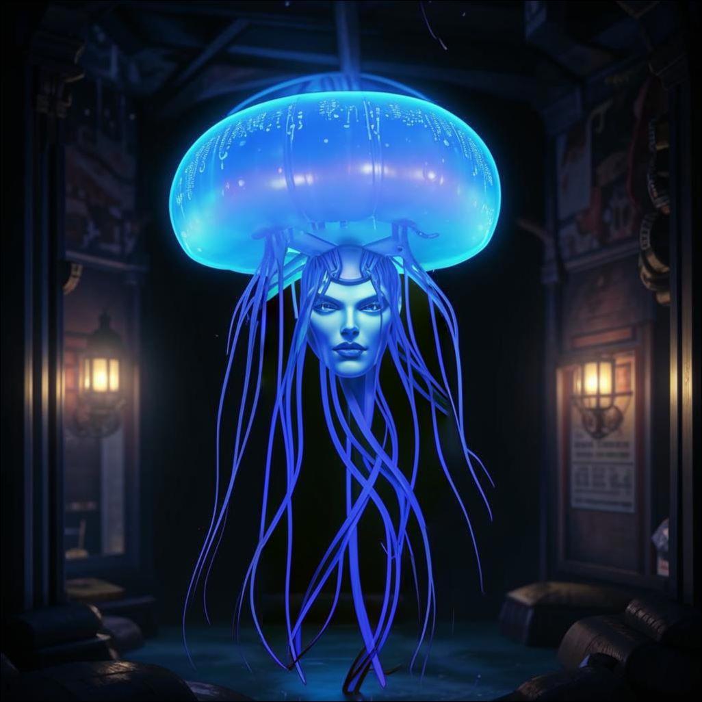 Но самым шокирующим оказалось для меня то, что я увидел в помещении, куда он меня затем привёл. Там прямо в воздухе висело какое-то полупрозрачное существо, похожее чем-то на морскую медузу. Оно было наполнено голубоватым искрящимся светом с десятками длинных щупалец, которые чуть колыхались под её головой, обладающее явно женскими чертами лица. Но главное, оно ждало, как я с ужасом понял, именно меня, и оно тут же, как я оказался там, тут же облепило меня этими своими щупальцами, а затем я почувствовал, как это проникло в меня. При этом больно совсем не было, просто по мне словно пробежал небольшой электрический разряд и угнездился где-то внутри моей головы и других органах тела. В это же самое мгновение весь мой страх, до этого сковавший меня, куда-то моментально испарился, а на душе стало так хорошо и спокойно, как никогда наверно не было во всей моей жизни. После чего прямо в голове неожиданно раздался нежный, как журчащий ручеёк, девичий щебечущий голосок: