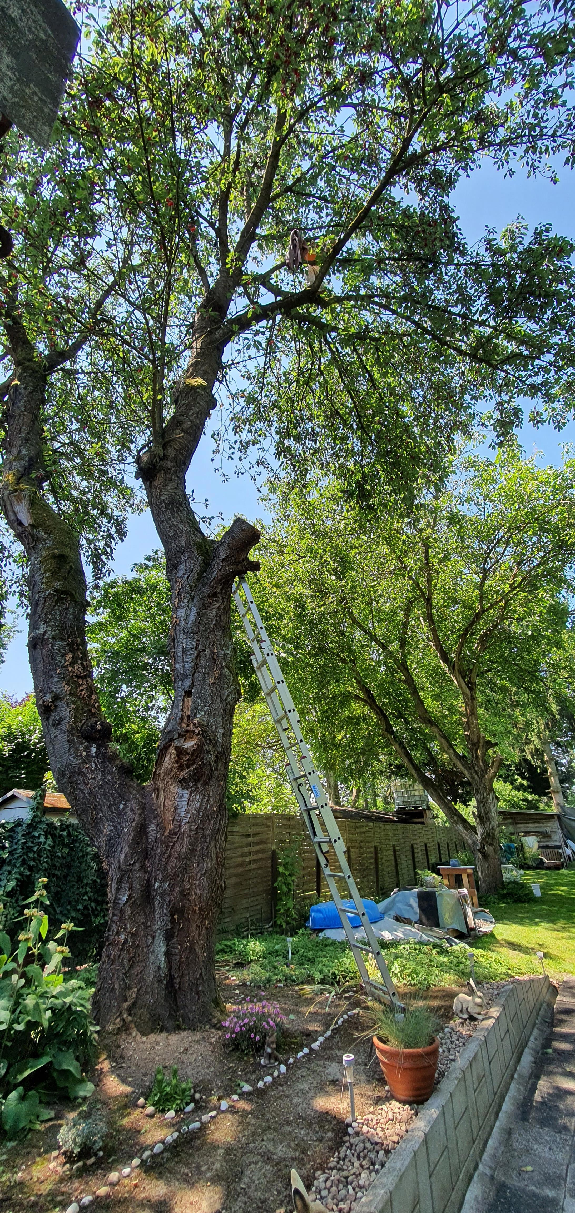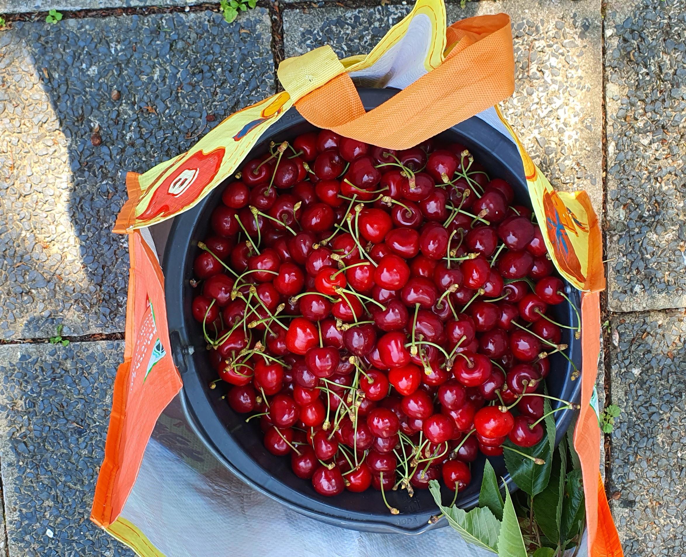 Даже я не выдержала, и в 17.00 свалила, схватив ведро, и тазик (10 кг). Но, пока он собирал и спускал на землю урожай, я потом бегала и раздавала соседям и знакомым. Итого: было собрано 27 кг. Рекорд однако.