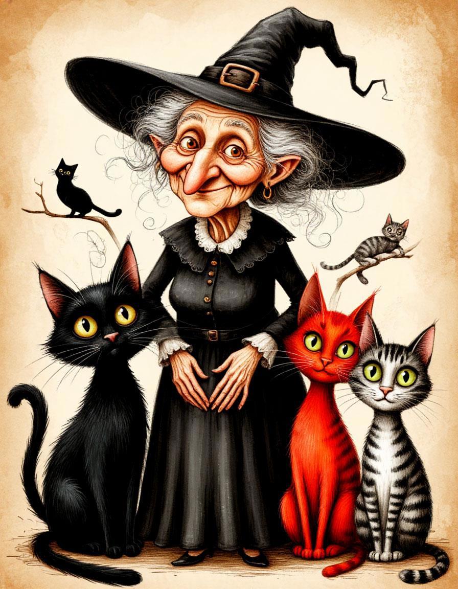 Старушка держит трех кошек, гуляет по парку, любит ватрушки и не любит печали и вредности.
